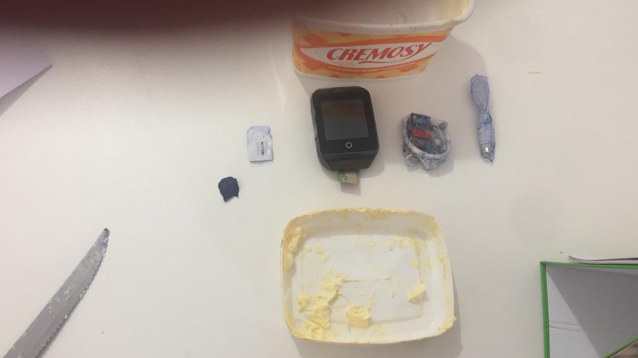 Agentes penitenciários encontram smartwatch em em fundo falso de pote de margarina