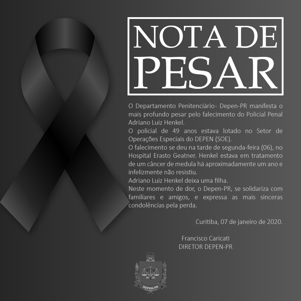 Nota de Pesar pelo falecimento do policial penal Adriano Luiz Henkel