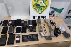 Agentes penitenciários apreendem 17 celulares, sete buchas de cocaína e nove tabletes de maconha em Cascavel