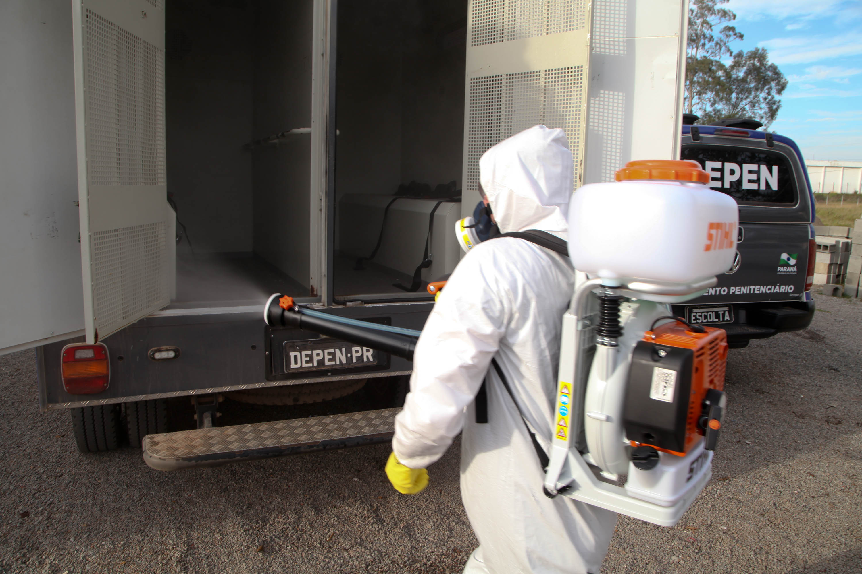 Além disso, os locais de detenção estão passando por limpezas contínuas dos ambientes, assim como higienização de viaturas e veículos de remoção. Estão sendo feitas desinfecção de ambientes compartilhados (como corredores, refeitórios, pátios e canteiros de trabalho dos detentos) está ocorrendo com maior periodicidade. A limpeza é feita diariamente com aspersão de água sanitária.