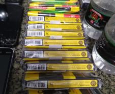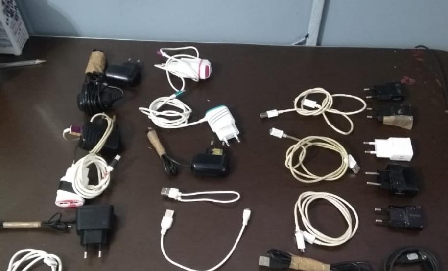Além disso, ainda foram encontrados um fio de ouro, três serras, duas brocas, duas carteiras de cigarro, além de oito cigarros soltos e 33 pacotes de seda. Todo o material foi entregue à Delegacia da Polícia Civil, para que fossem tomadas as medidas cabíveis.
