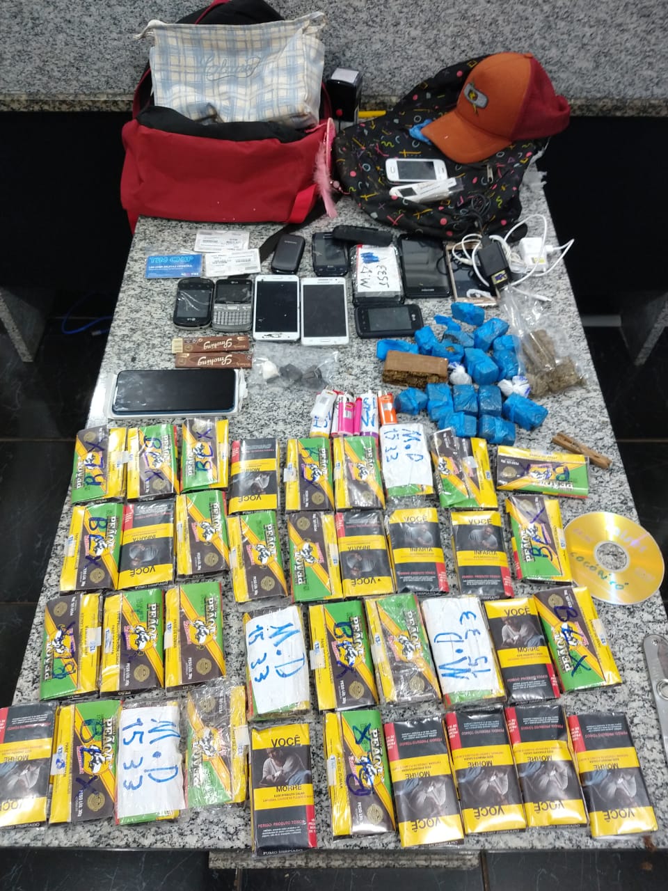 “Com o apoio de policiais civis, foram tomadas as medidas cabíveis e, assim, foi possível fazer a abordagem”, explicou Thiago. Com a dupla, foram apreendidos 11 celulares, 40 pacotes de fumo, 10 gramas de cocaína, porções de maconha, carregadores, fones de ouvido e chips telefônicos.