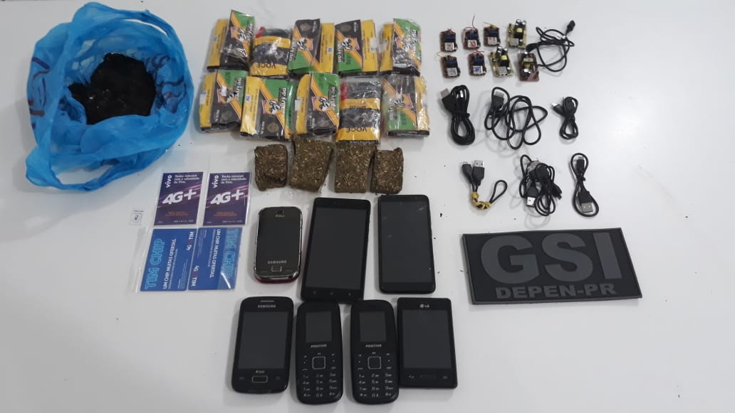 Em duas ações distintas, no último fim de semana (08 e 09/08), agentes do Departamento Penitenciário (Depen) lotados em Cascavel, no oeste do estado, impediram que 18 celulares fossem entregues em unidades prisionais da cidade. Além disso, os servidores ainda prenderam dois homens e apreenderam maconha, cocaína, fumo e outros produtos ilícitos.