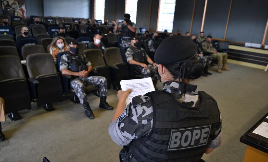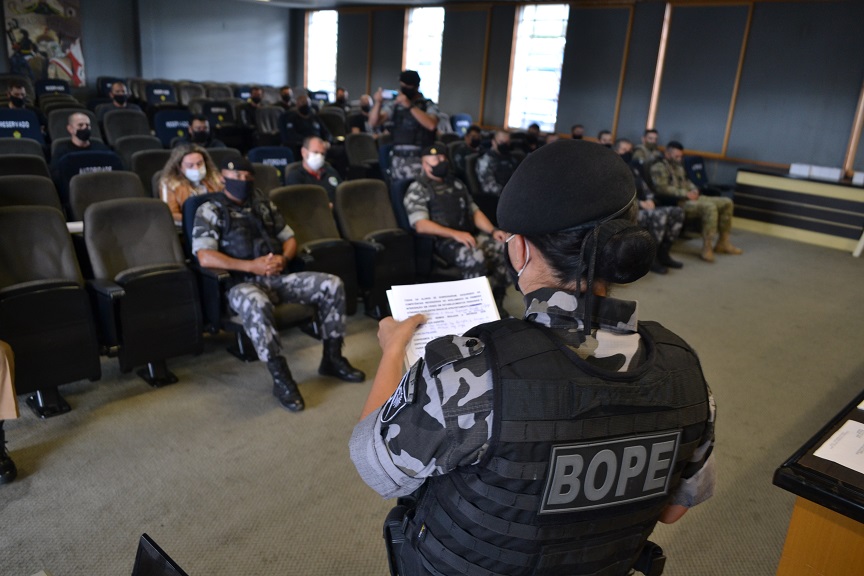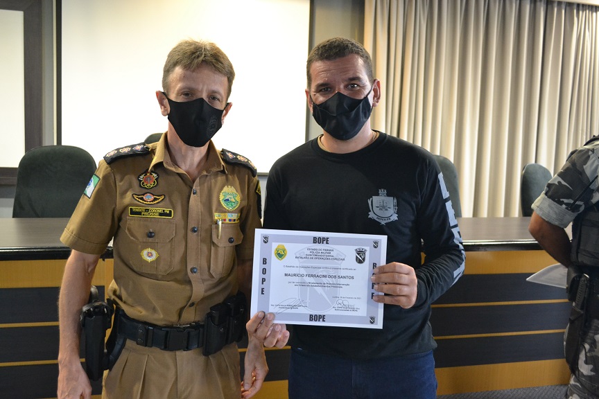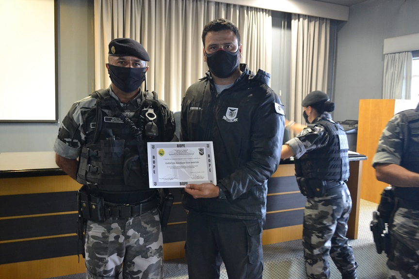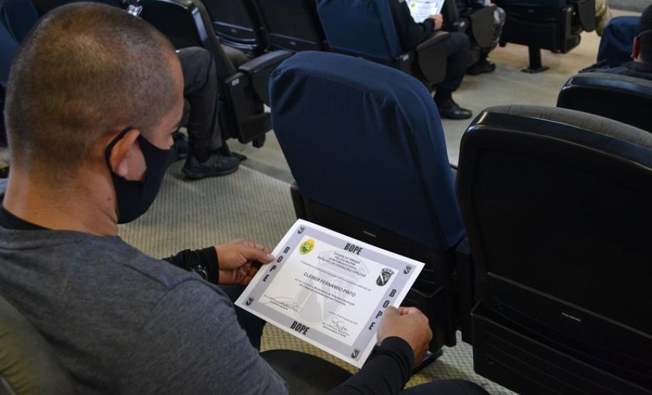 Agentes penitenciários do Departamento Penitenciário do Paraná participaram na última semana do curso de primeira intervenção em crise, ministrado pelo Batalhão de Operações Especiais (BOPE). Ao todo, 16 servidores receberam a certificação que ocorreu nesta sexta-feira (26/02), no Quartel do Comando-Geral da Polícia Militar, em Curitiba.