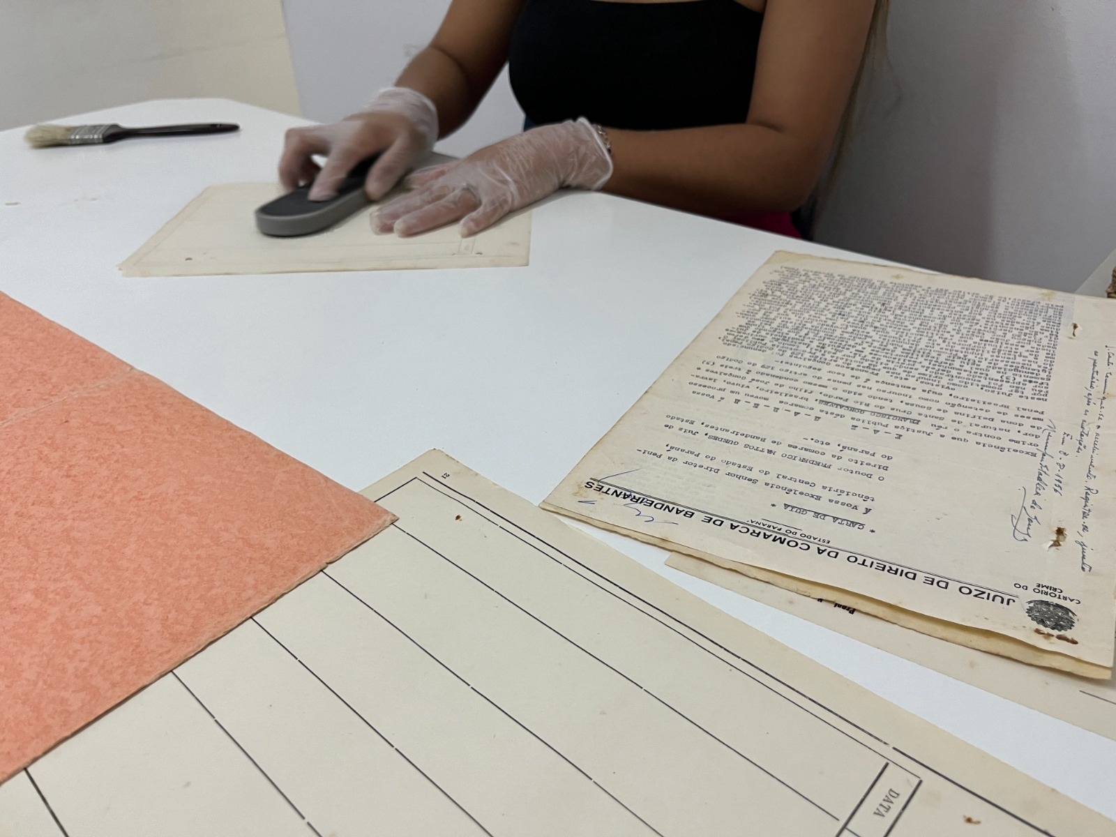 Passo a passo: como é feita a recuperação de documentos? - A recuperação desses documentos inicia-se fazendo a preparação do documento a ser trabalhado, retirando-se os excessos de impurezas com uma trincha, passando-a pelo documento de cima para baixo e a higienização utilizando-se uma lixa fina e flanela.