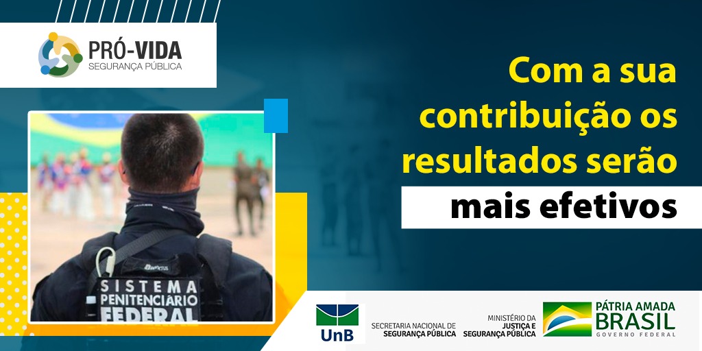O prazo para participar da Pesquisa Nacional sobre a Valorização do Profissional de Segurança Pública se encerra em 15 dias. A pesquisa faz parte do Programa Nacional de Qualidade de Vida para Profissionais de Segurança Pública – Pró-Vida, do Ministério da Justiça e Segurança Pública (MJSP). Por isso, o Departamento Penitenciário do Paraná reforça que todos os profissionais que integram o quadro participem da ação.