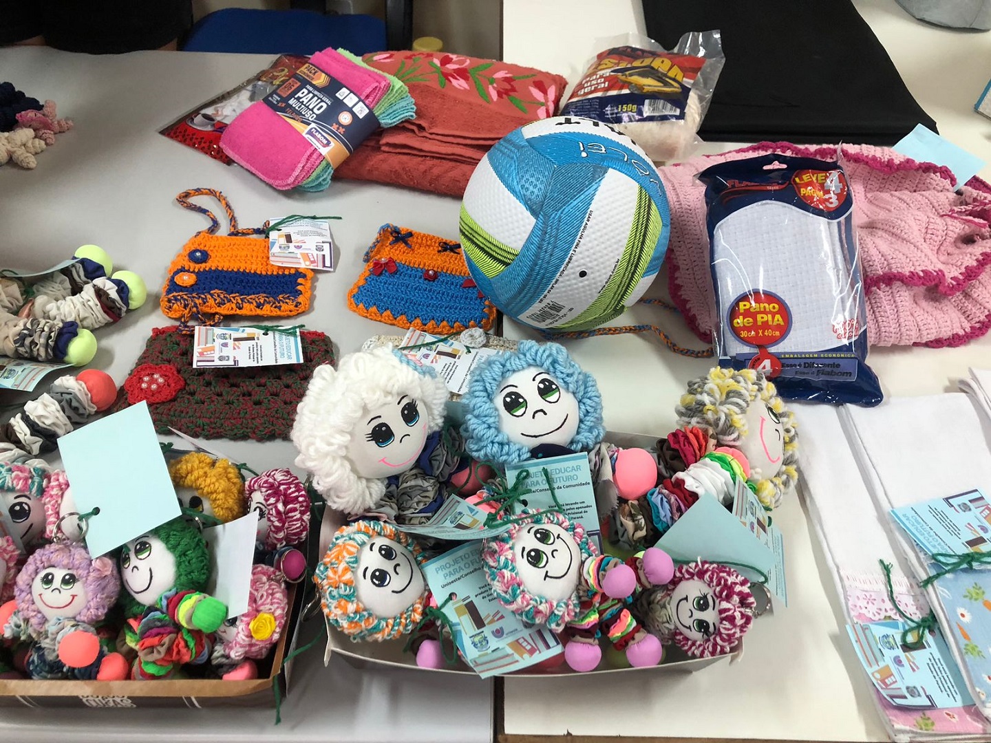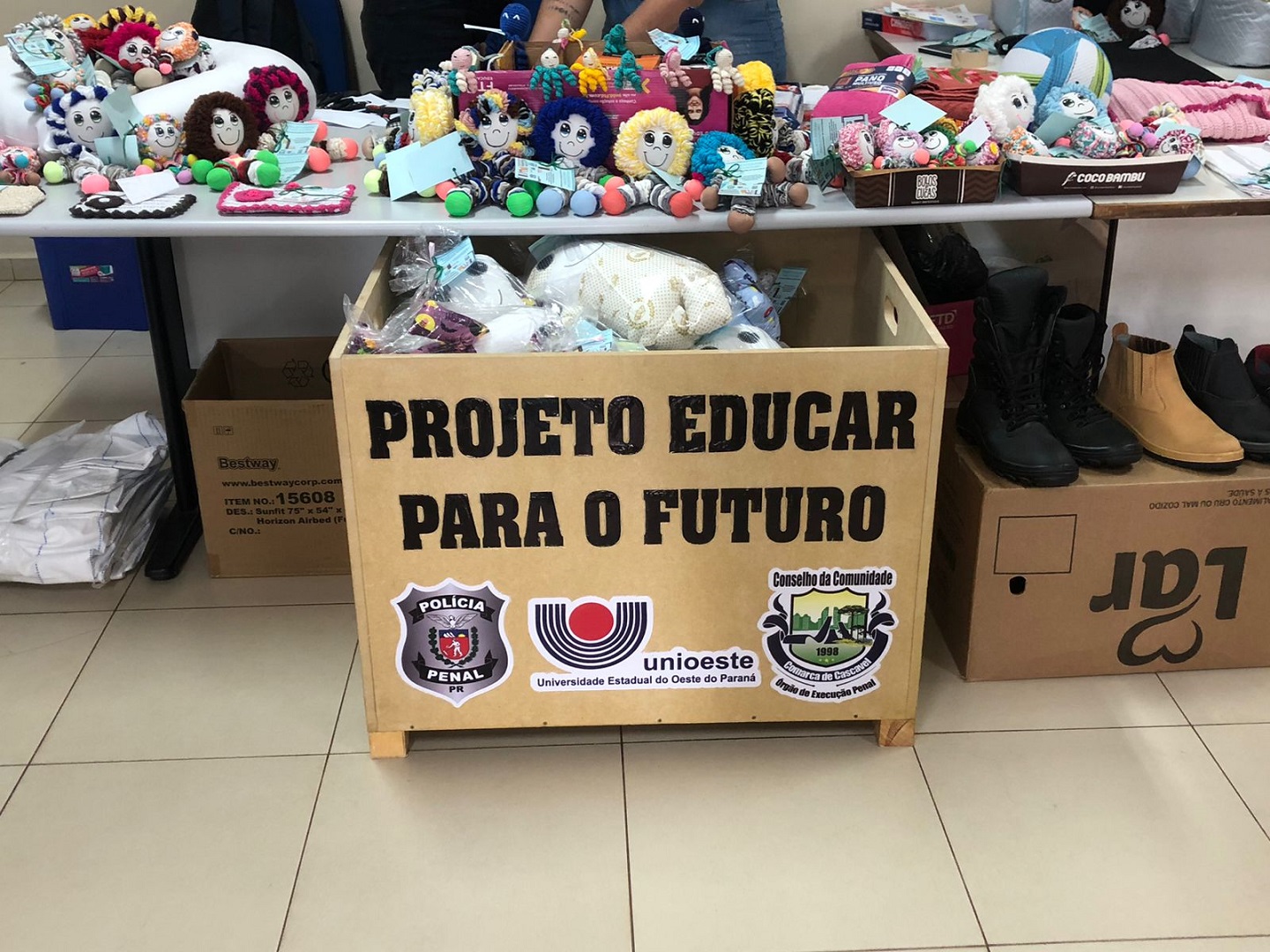Entre os projetos expostos estão a produção de naninhas, bonecas de fuxico e pelúcias. Brinquedos fabricados por pessoas privadas de liberdade (PPLs) e destinados a entidades que atendem pessoas carentes e hospitais da região. Também há produtos das industrias conveniadas com o sistema prisional a exemplo de produções da área têxtil, gráfica e de materiais de proteção individual.