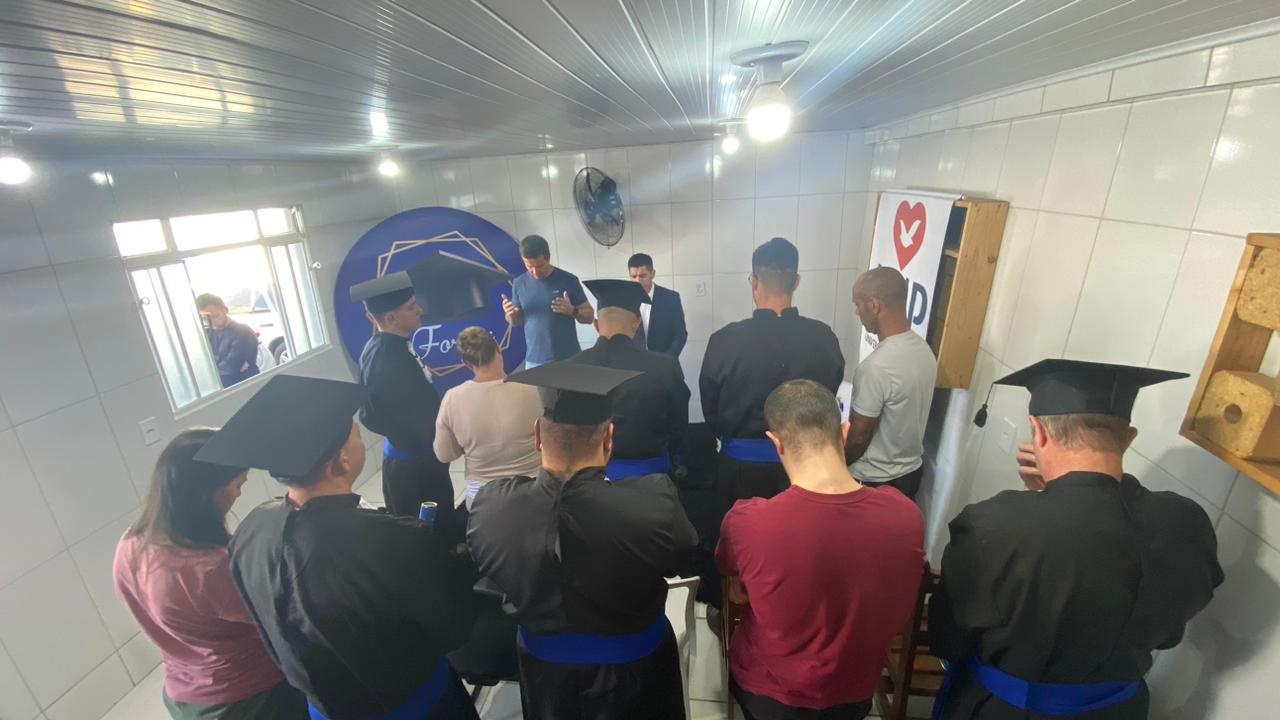 Neste domingo (9), a primeira turma do curso de qualificação profissional em gestão de empresas da instituição Fanduca celebrou sua formatura em grande estilo. A cerimônia ocorreu na Cadeia Pública de Castro, contando com a presença de familiares dos formandos, o que tornou o evento ainda mais especial e emocionante.