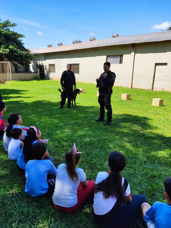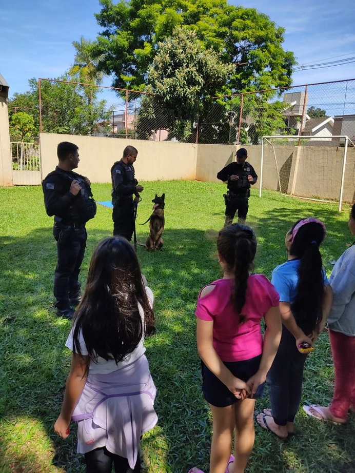 O Setor de Operações Especiais com Cães (SOE-K9), da regional administrativa de Foz do Iguaçu, realizou uma dinâmica de apresentação para crianças do Projeto Social da Casa São Luis Guanella, em Santa Terezinha de Itaipu.