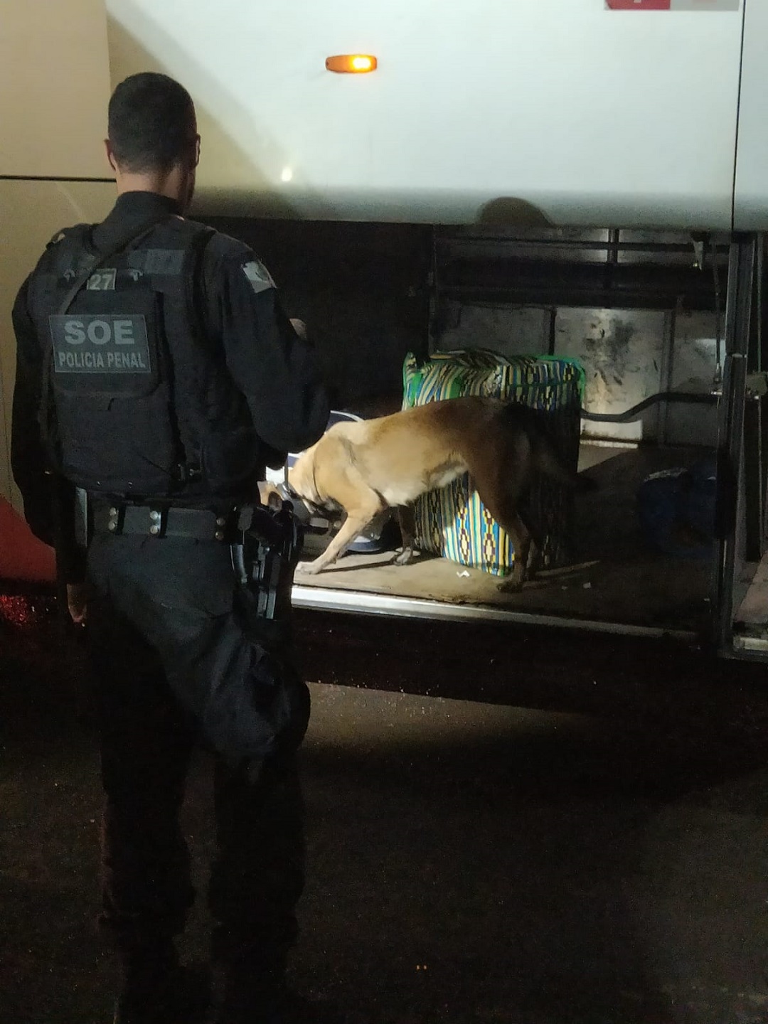 Os cães do SOE, que chamam-se Fox e Ares, inspecionaram 37 ônibus que foram abordados por policiais militares, auxiliando no foco da operação, que é a busca por ilícitos em veículos. Além dos ônibus, caminhões e cerca de 15 automóveis também foram parados para fiscalização.