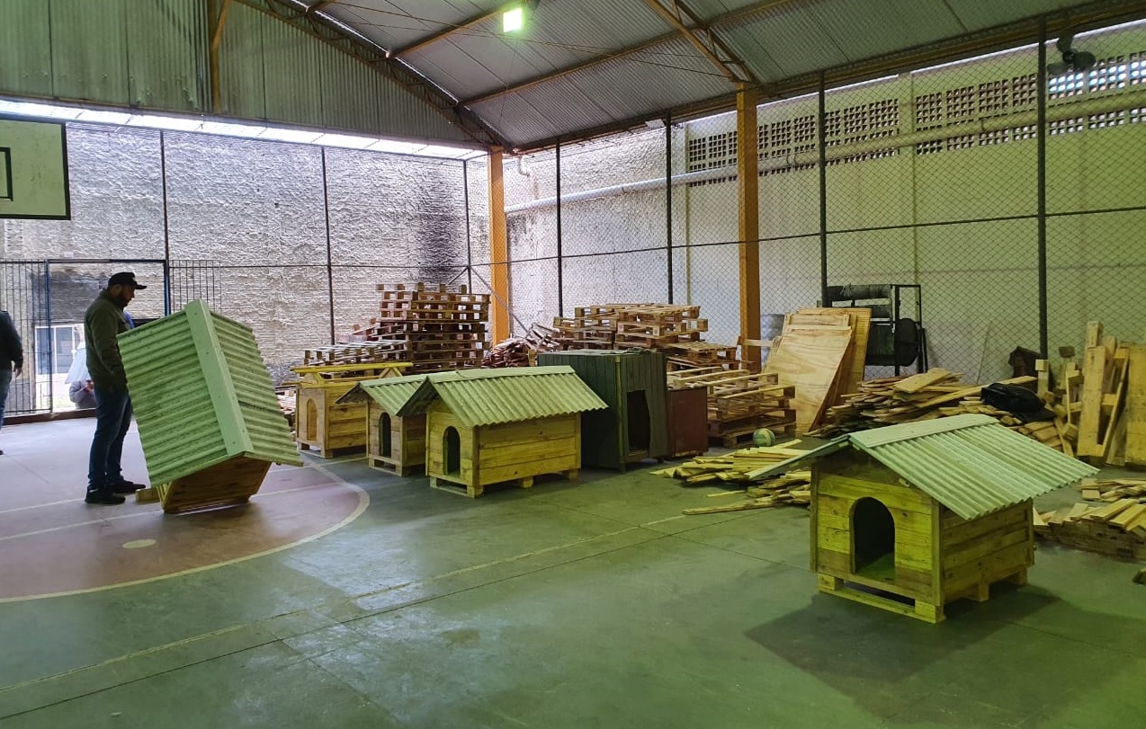 Antes deste acordo com a Secretaria de Meio Ambiente, Conselho de Meio Ambiente e a ONG Latidos do Bem, a Polícia Penal já fazia a construção de casinhas para cães com materiais 100% oriundos de doações.