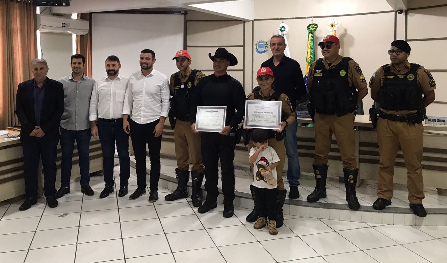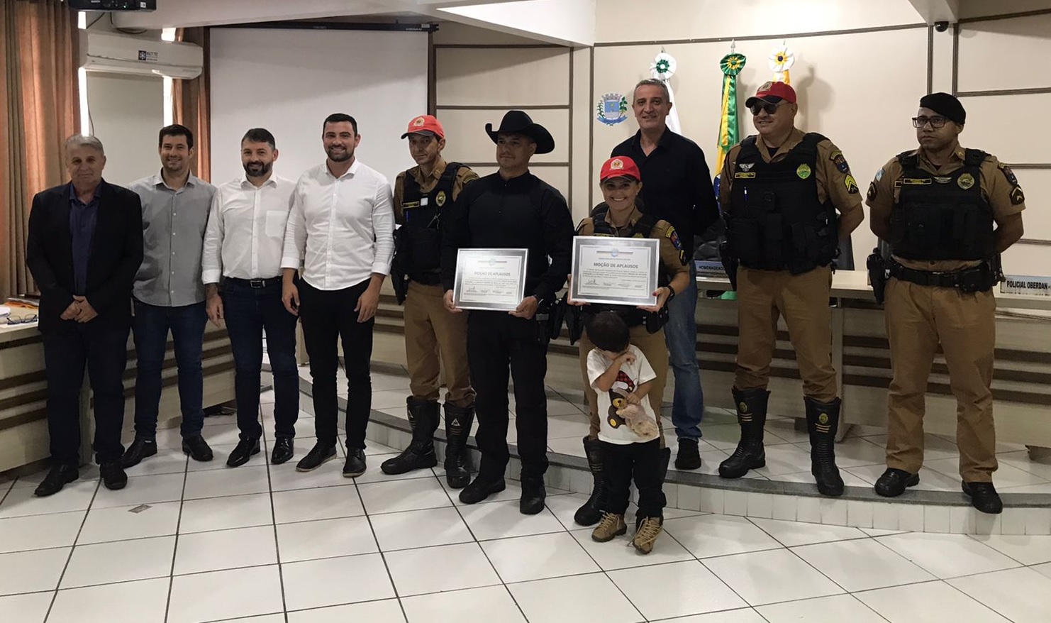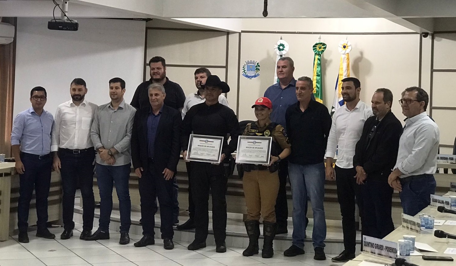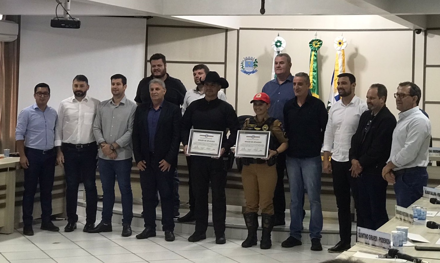 O ato de honraria foi proposto pelos vereadores Raul Oderban Sareta e Jean Emiliano, pelo presidente da Câmara, Tupy Prolo e pelo vice-presidente, Júnior Nesi. Além da homenagem, os policiais receberam uma moção de aplausos.