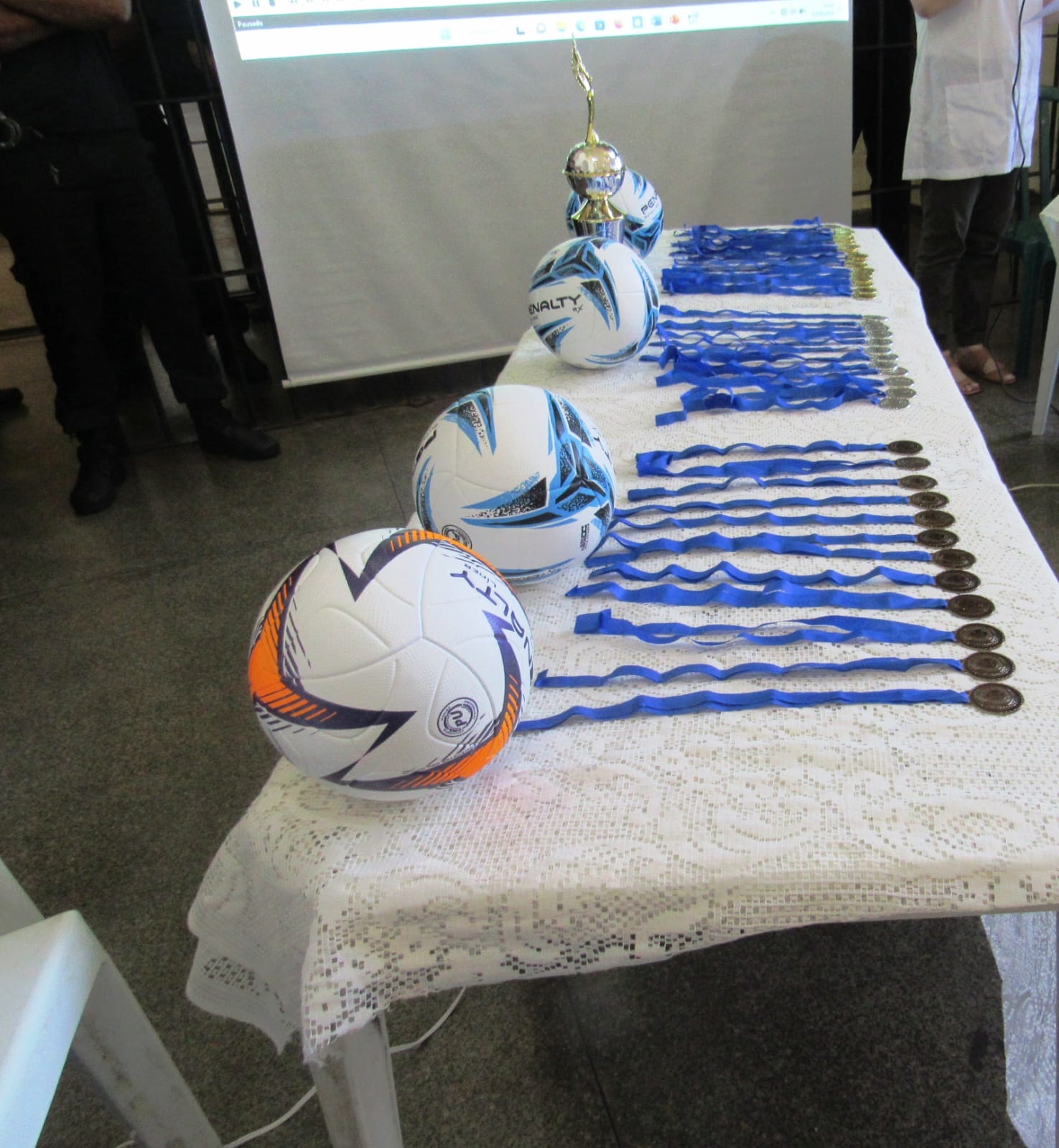 Nesta terça-feira (12), foi realizada a solenidade de premiação aos times vencedores do 1º, 2º e 3º lugar do Campeonato de Futsal da Penitenciária Estadual de Cruzeiro do Oeste (PECO). O torneio teve a participação de aproximadamente 500 homens privados de liberdade, sendo que 21 deles alcançaram o pódio, com direito a medalhas aos três times e troféu para o time que ficou na primeira colocação.