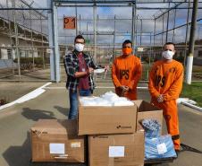 A Casa de Custódia de Piraquara (CCP) já distribuiu cerca de 3 mil máscaras de proteção aos detentos. O material produzido com a mão de obra prisional foi confeccionado na própria unidade penal.