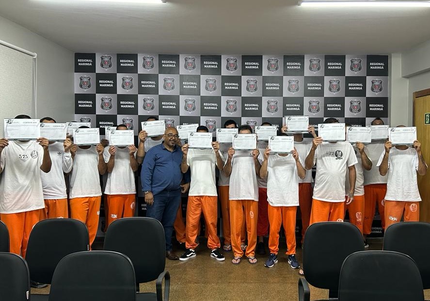 A Polícia Penal do Paraná (PPPR) promoveu nos dias 5 e 7 a formatura conjunta de 94 pessoas privadas de liberdade (PPLs) que participaram de cursos profissionalizantes realizados na Colônia Penal Industrial de Maringá (CPIM). Foram oferecidos de forma presencial os cursos de Costura Industrial e Aplicador de Revestimento Cerâmico com 47 alunos, enquanto outros 47 participaram de cursos como profissional em vendas, construção civil, cuidador de idosos, gestão para empresa de transporte e assistência em farmácia por meio da Fanduca, uma avançada plataforma digital.