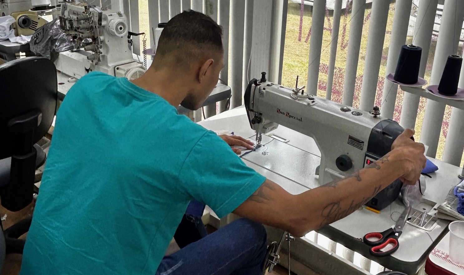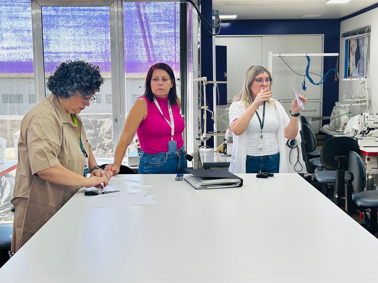 E entre linhas e agulhas, o processo envolveu o aprendizado em vários tipos de máquinas de costura, como a reta e a overloque. “Quero ter essa profissão quando sair daqui”, conta outro custodiado. Recluso desde 2008, ele tem 34 anos, trabalha numa empresa de confecção dentro da CPIM e o curso serviu como aperfeiçoamento. Agora com o certificado em mãos, o desejo dele, como de tantos outros, é ter uma oportunidade de trabalho ao fim da pena.