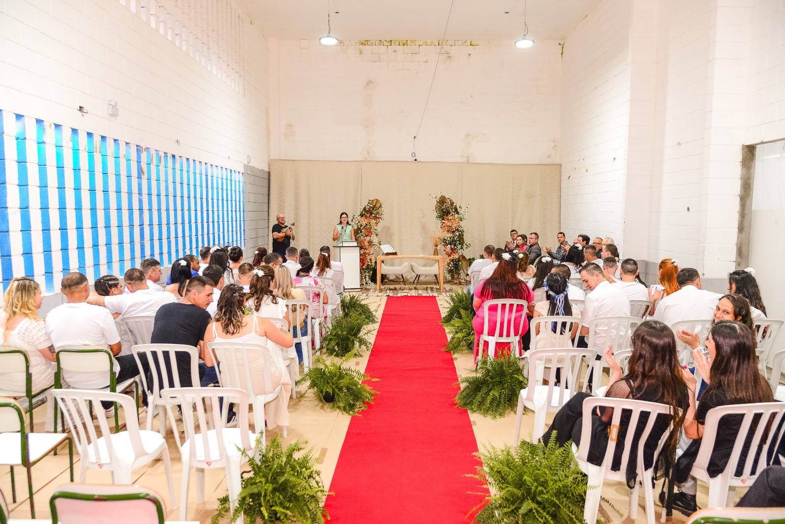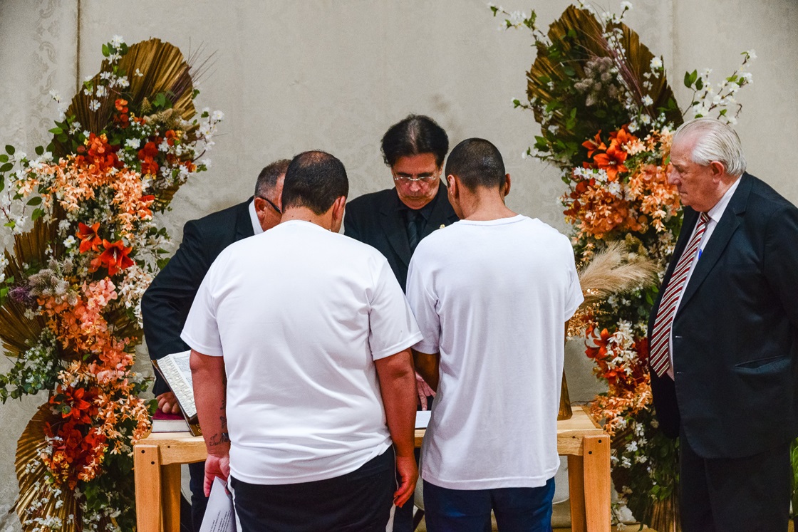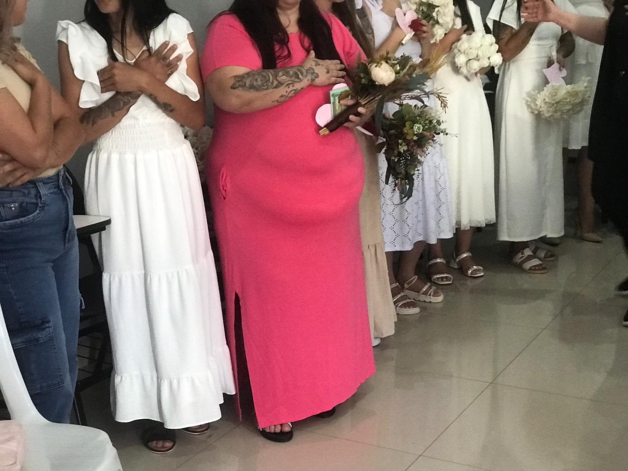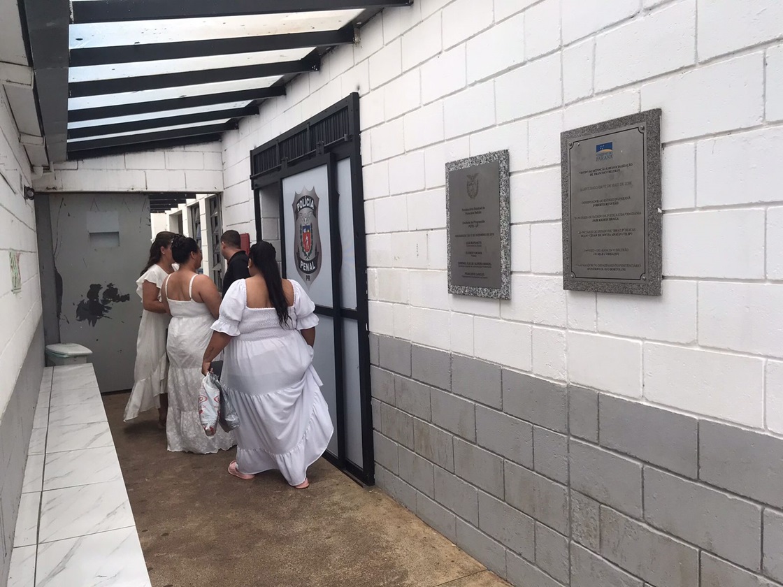 Entre os casais, estava um par homoafetivo — um dos noivos já em liberdade e o outro cumprindo pena na PEFB — e um casal formado por uma mulher custodiada na Cadeia Pública de Dois Vizinhos e um homem recluso na unidade.