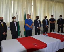 PRESENÇAS – Também estiveram presentes no evento o deputado federal Aroldo Martins, o deputado estadual Alexandre Amaro, o vice-diretor do Depen Luiz Francisco da Silveira, o assessor de segurança do Depen, Alisson Andrade, o coordenador regional do Depen, em Curitiba, Jeferson Walkiu, o gerente de tratamento penal do Depen, Ismael Meira, a chefe do setor de educação e capacitação do Depen, Janaína Baptista da Luz, o chefe do Setor de Produção e Desenvolvimento do Depen, Boanerges Silvestre Boeno Filho, o diretor do Complexo Medico-Penal, Bruno Henrique Lopes, a diretora do CIS-Piraquara, Paula Aparecida Cozlik, e demais servidores do departamento.