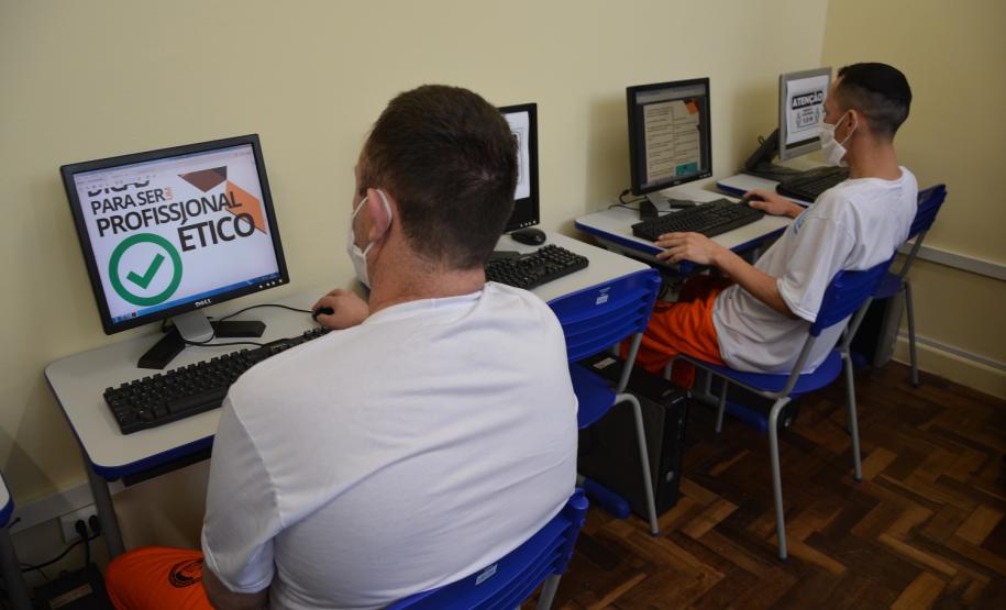 Neste primeiro momento, os cursos disponibilizados pela plataforma EAD são de assistente administrativo, auxiliar de escritório e recursos humanos. Já na modalidade presencial são ofertados os cursos de empreendedorismo e confecção de chinelos, este último, especialmente adaptado para a galeria de presos cadeirantes e com dificuldades de locomoção que estão custodiados no CMP.