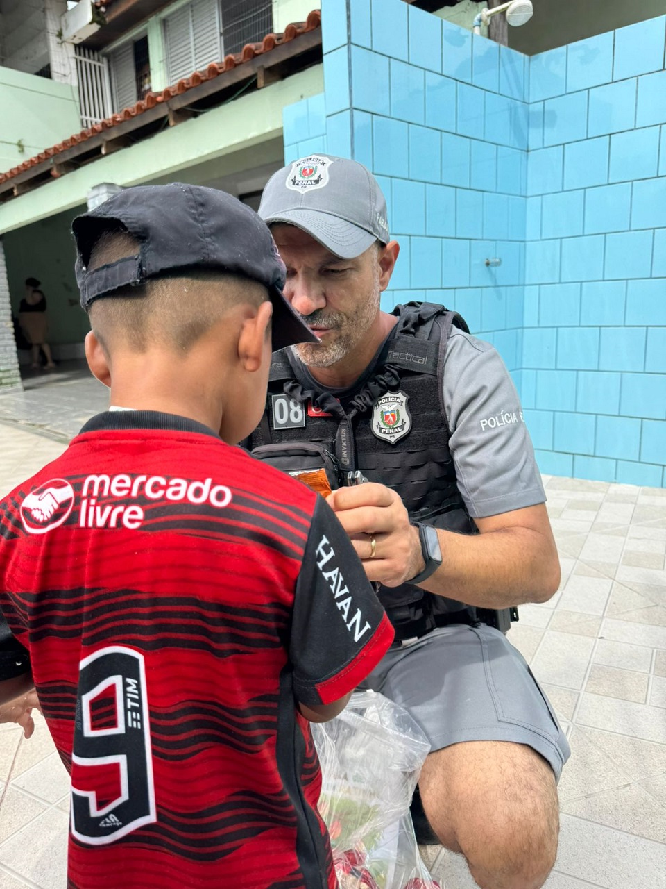 A visita proporcionou momentos de lazer e descontração, incluindo a distribuição de doces e brinquedos fabricados no sistema prisional por meio de projetos sociais. As crianças também puderam tirar fotos com os policiais penais e a viatura, além de brincar com a cachorrinha Gamora, mascote de um dos policiais que participaram da ação.
