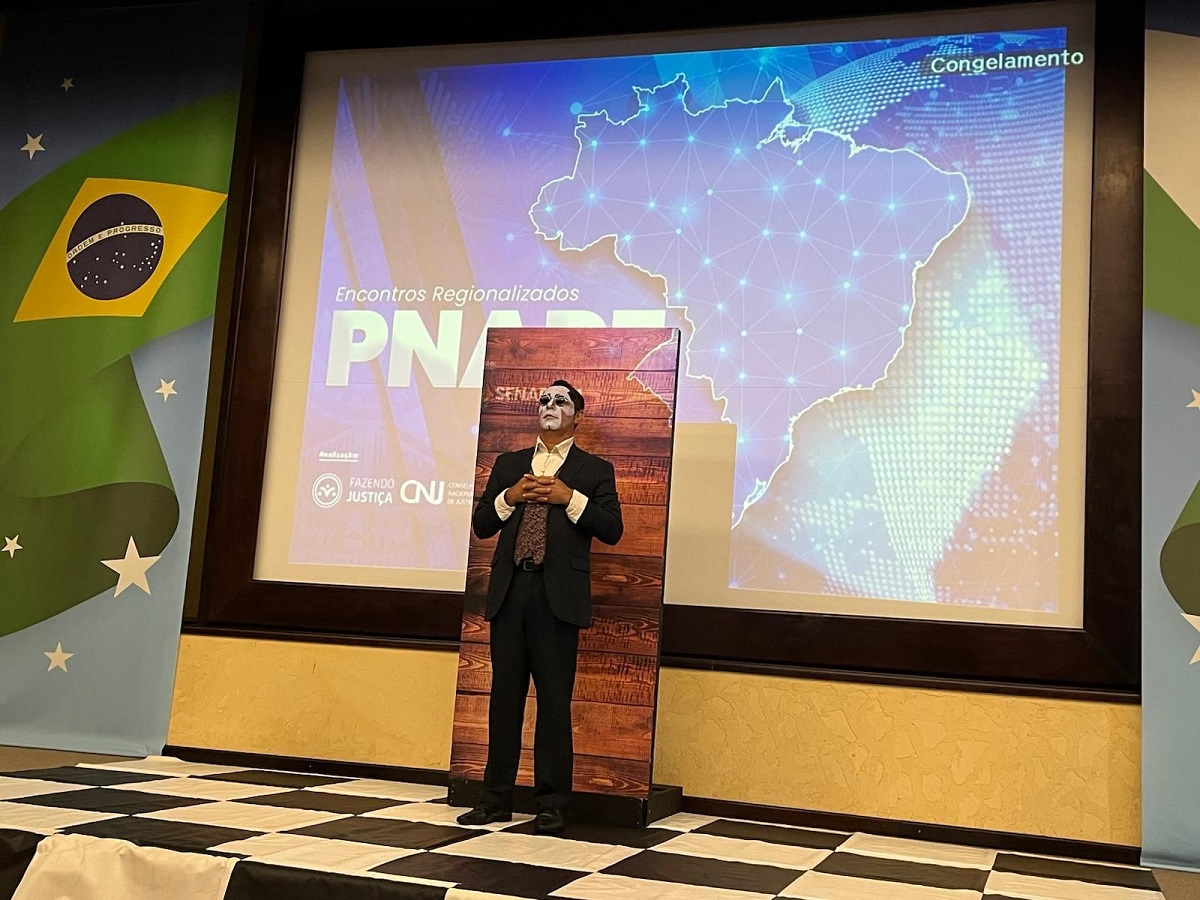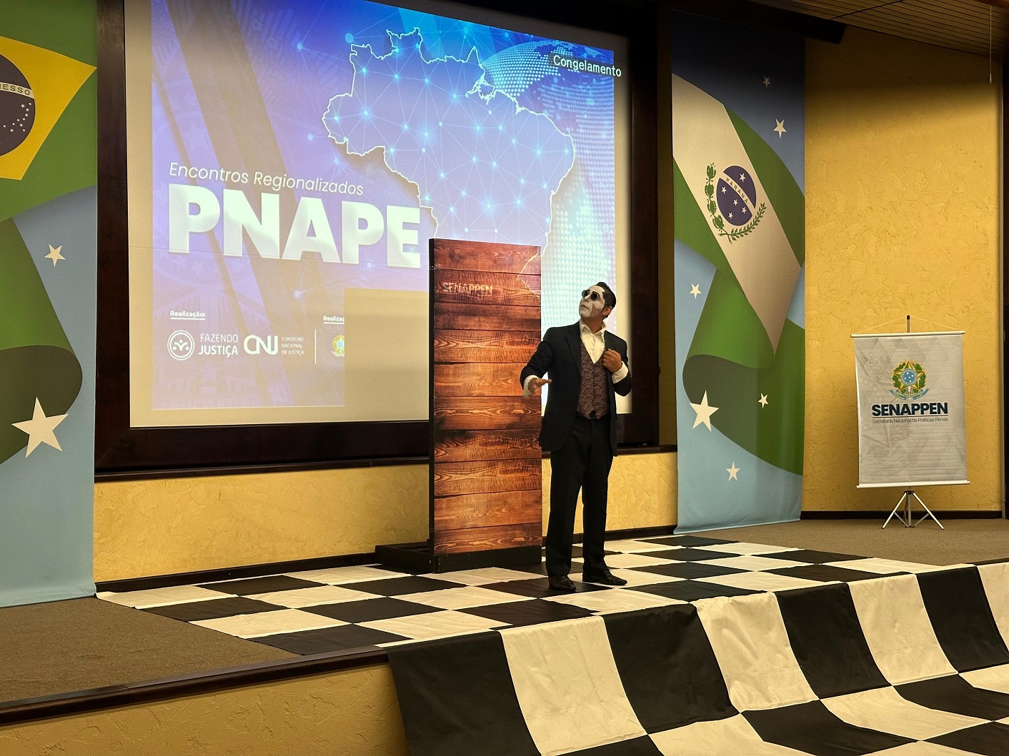 Apresentação teatral com apenado - O evento também contou com uma apresentação teatral, com a peça “Fragmentos da Morte de Ivan Ilitch”, apresentada pelo apenado Claudeir Fidélis e baseada na obra do escritor russo Liev Nikolayevich Tolstói, sob direção de Marco Antônio Garbelini e Adauto da Silva. Essa iniciativa ressalta o uso das artes como uma ferramenta para o tratamento penal e a reintegração social de pessoas privadas de liberdade. O projeto de teatro nos estabelecimentos penais do Paraná foi concebido em conformidade com as legislações vigentes que asseguram um tratamento penal humanizado.