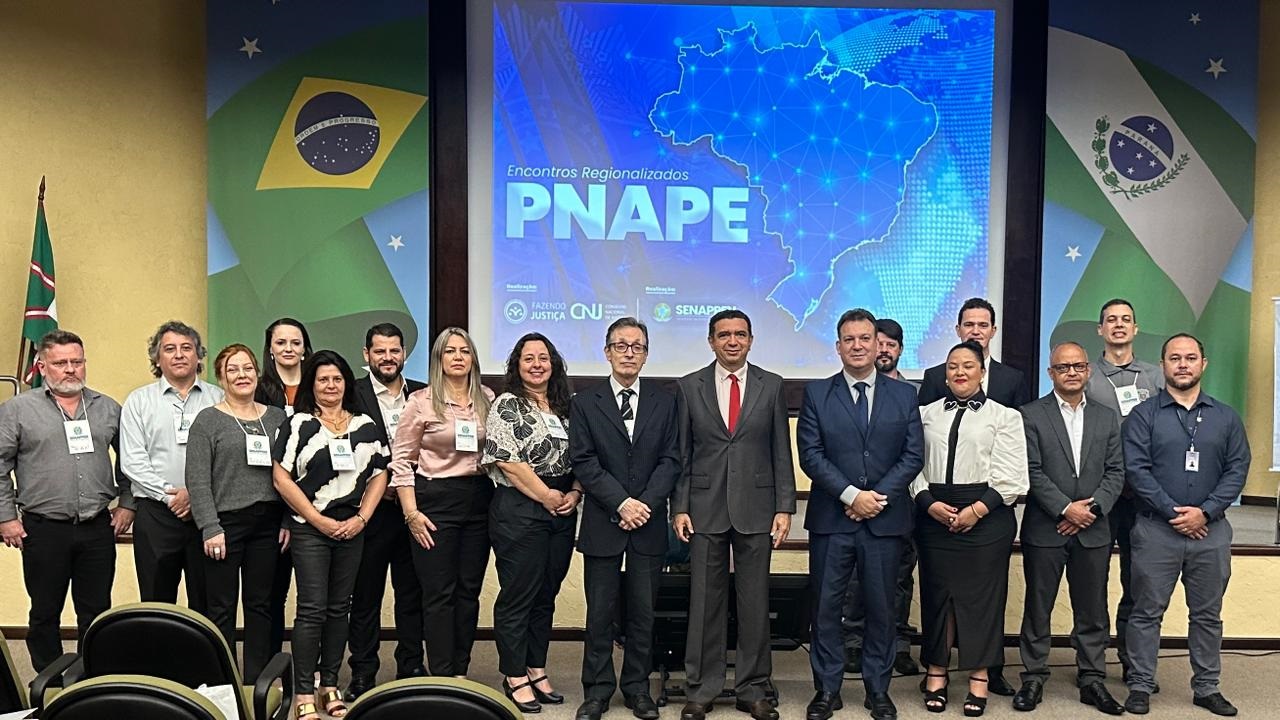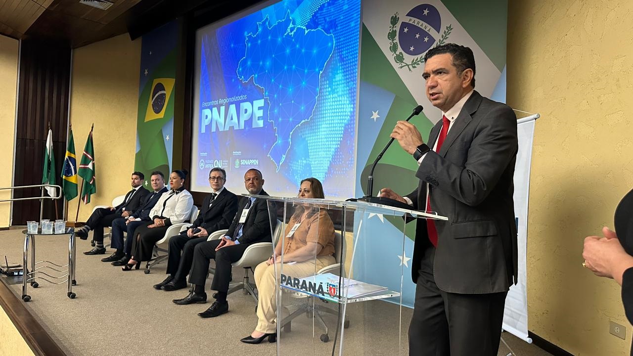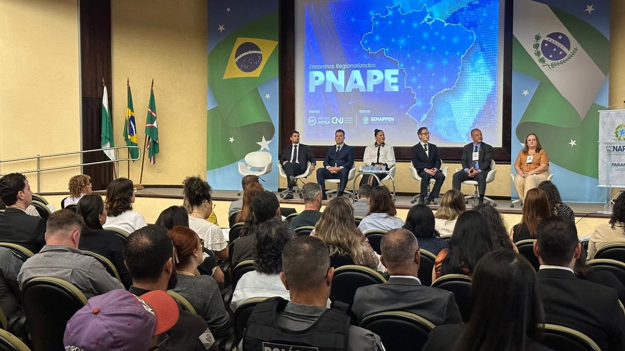 Nesta terça-feira (3), Curitiba foi palco da etapa Sul dos encontros regionalizados da Política Nacional de Atenção à Pessoa Egressa do Sistema Prisional (PNAPE). O evento, promovido pela Secretaria Nacional de Políticas Penais (Senappen), do Ministério da Justiça e Segurança Pública, contou com o apoio do Conselho Nacional de Justiça (CNJ) e da Polícia Penal do Paraná (PPPR). A cerimônia foi realizada na sede da Secretaria de Estado da Segurança Pública do Paraná (SESP-PR).