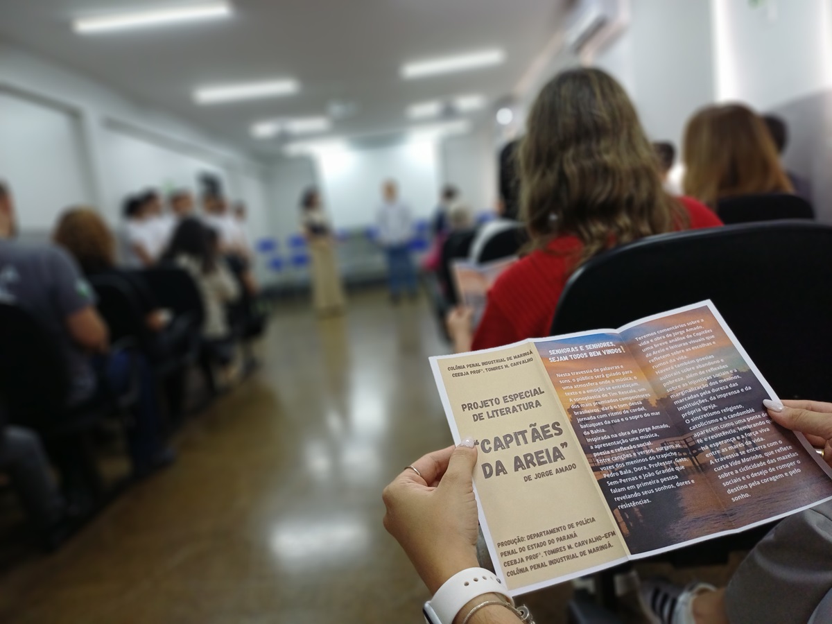 A Polícia Penal do Paraná (PPPR), por meio da Colônia Penal Industrial de Maringá (CPIM) e do Centro Estadual de Educação Básica de Jovens e Adultos (Ceebja) Professora Tomires Carvalho, realizou nesta segunda-feira (3) o encerramento do Projeto Especial de Literatura com a obra “Capitães da Areia”, do escritor Jorge Amado. O clássico da literatura brasileira, que retrata a vida de crianças e adolescentes em situação de vulnerabilidade social, foi o ponto de partida para reflexões sobre desigualdade, liberdade, amizade e superação.