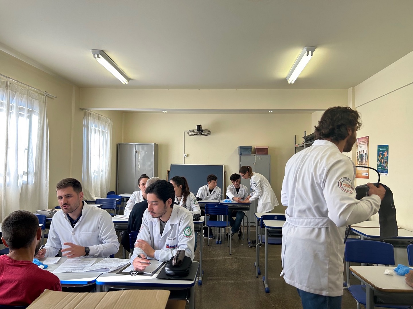 O grupo de estudantes realiza regularmente ações de prevenção em saúde para as pessoas privadas de liberdade (PPLs) do Complexo Penitenciário de Maringá. O objetivo é rastrear entre os apenados eventuais portadores do vírus HIV, sífilis, hepatite B e C, para oferecer tratamento precoce. A ação faz parte da disciplina de Saúde Coletiva, coordenada pela professora Francielle Renata Danielli Martins Marques. Os exames são aplicados por estudantes do quarto ano da graduação de Medicina da Uningá.