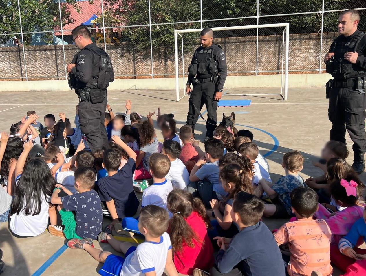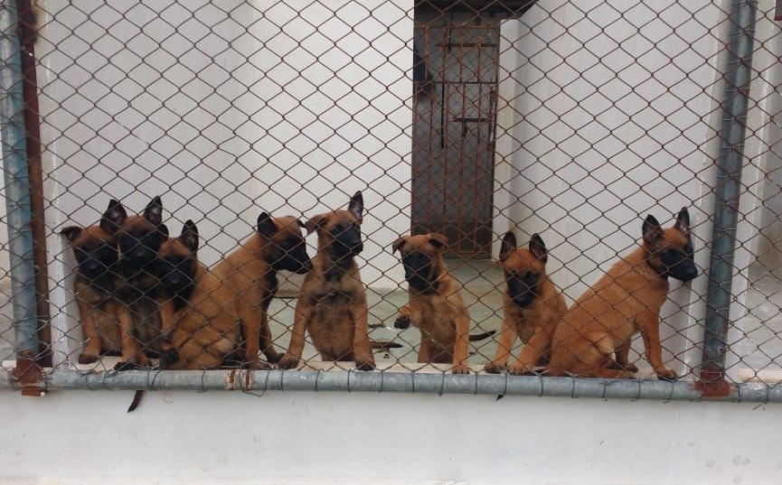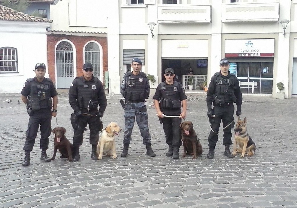 Adestramento - Depois das escolhas pelos animais que possuem o perfil para atuar nas atividades policiais, é necessário adestrá-lo para o melhor comportamento e desempenho durante estas ações. “A adaptação dos filhotes com os ambientes e ruídos com qual ele possivelmente terá contato durante a atuação no trabalho policial é realizada logo após a escolha dos cães que poderão integrar à equipe policial. Concomitantemente é realizada a socialização com outros animais da mesma e outras espécies, além de nós, seres humanos. Esta parte do treinamento é realizada durante a janela social e se encerra aproximadamente aos 120 dias de vida do cão, podendo variar de acordo com a raça. A partir de então, inicia-se a modelagem do comportamento canino através de reforços positivos ou negativos, nos quais o condutor passa a recompensar o cão por comportamentos desejados, ignorando os indesejados, realizando o manejo de forma a direcionar o cão para o auxílio da atividade policial. Cada condutor é responsável pelo adestramento de seu cão. Em média, o treinamento dura aproximadamente 14 meses para os cães direcionados para atuar como farejadores e 24 meses para os cães que atuam na função de proteção”, detalha Nieri.