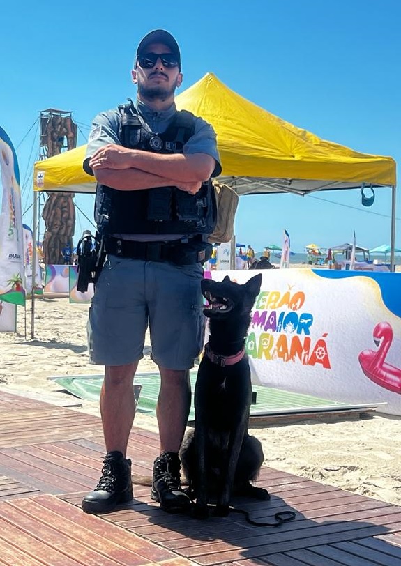 A aposentadoria do cão policial - O uso de cães nas operações policiais é uma prática valiosa que proporciona inúmeros benefícios, pois eles desempenham um papel vital na aplicação da lei, complementando as habilidades humanas e fortalecendo a segurança pública. Mas chega um momento que é necessário encerrar estas atividades desempenhadas por eles em âmbito do trabalho policial, sendo de extrema importância respeitar a saúde do animal, bem como sua condição física. “O cão se aposenta geralmente entre os 8 e 9 anos de idade, dependendo do seu rendimento e condição física ou de saúde. Se antes dessa idade for observada qualquer alteração que o impeça de continuar trabalhando, opta-se pela sua aposentadoria. A prioridade é ter cães sadios na equipe, sobretudo proporcionando bem estar aos mesmos. Os condutores dos cães aposentados possuem a prioridade para adotá-los, o que geralmente ocorre devido ao laço de amor criado entre eles”, finaliza Barbara.