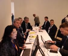 O Paraná participou na última semana do 4º Encontro do Consórcio de Integração Sul e Sudeste (Cosud), que neste ano teve o tema “Gás e Infraestrutura”. O evento ocorreu no Palácio Anchieta, em Vitória, no Espírito Santo, e contou com a presença do governador do Paraná, Carlos Massa Ratinho Junior, e representantes dos sete estados das duas regiões. Dentre os temas abordados estava segurança e administração penitenciária, e quem representou o Paraná neste grupo de trabalho foram o secretário da Segurança Pública, coronel Romulo Marinho Soares, e o vice-diretor do Departamento Penitenciário do Paraná, Thorstein Ferraz.
