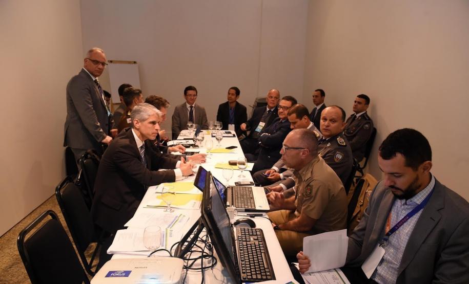 A recepção ocorreu na tarde de sexta-feira (23/08) e, logo após, foram formados os grupos de trabalho para cada área. Na segurança pública, cada estado ficou responsável por colocar em prática três eixos temáticos discutidos no encontro, em parceria com o Consórcio de Integração Sul e Sudeste: programas de parcerias municipais, formalização de flagrante por meio de videoconferência, e medidas de prevenção de seguranças nas escolas.