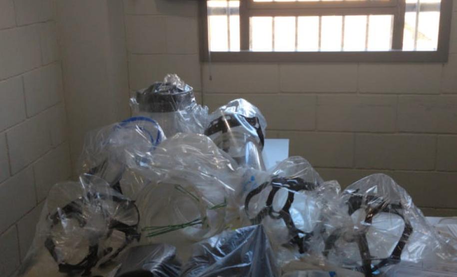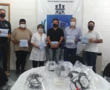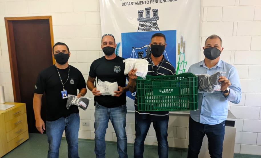Dos produtos incluídos no kit, os óculos de segurança foram adquiridos pela Secretaria da Segurança Pública do Paraná e repassados ao Departamento Penitenciário. Assim como os jalecos, as máscaras foram produzidos pelos detentos da regional. “Semanalmente, estamos enviando 200 para cada penitenciária e outras 100 para cada cadeia pública de gestão plena”, afirmou Silveira.