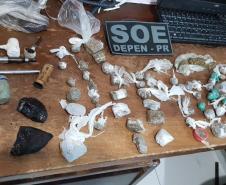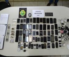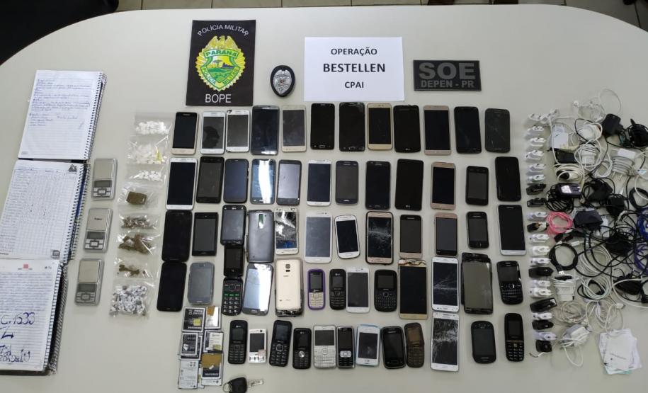 OPERAÇÃO BESTELLEN - O Departamento Penitenciário também deflagrou uma varredura nas dependências da Colônia Penal Agroindustrial, em Curitiba. Nesta operação, foram apreendidos 61 celulares, 73 gramas de maconha, 19 gramas de cocaína, além de anotações, que ficarão à disposição do Setor de Inteligência do Depen, para averiguações.