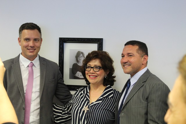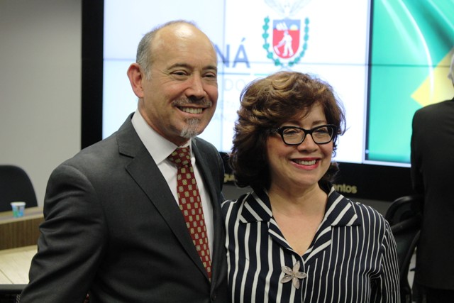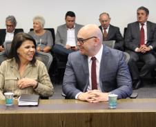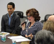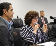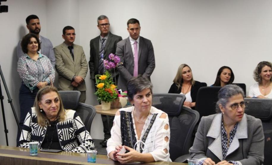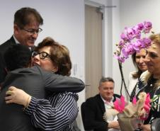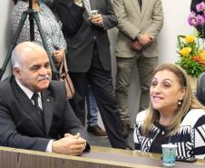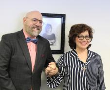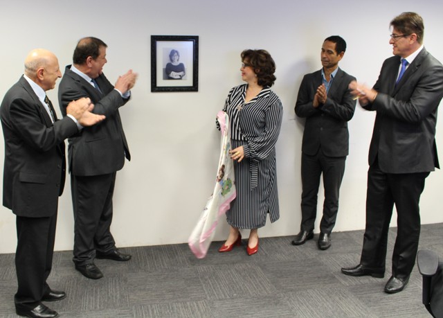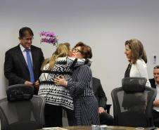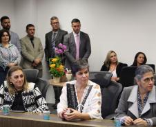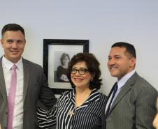 O Departamento Penitenciário do Paraná (Depen) homenageou a primeira e única mulher a coordenar a instituição, a advogada Mara Catarina Mesquita Lopes Leite, na tarde desta quarta-feira (16/10), na Sala de Gestão de Crises da Secretaria da Segurança Pública. Na solenidade, que teve a participação do secretário da pasta, coronel Romulo Marinho Soares, e do diretor do Depen, Francisco Caricati, houve o descerramento da foto que será exposta na galeria de ex-diretores da instituição.