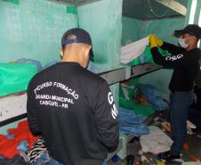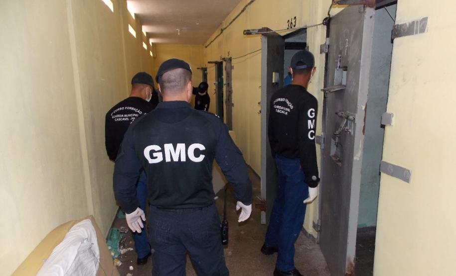 Para o trabalho, foram designados 66 alunos do 2º Curso de Formação da Guarda Municipal de Cascavel (GMC), os quais ficaram responsáveis pela revista geral dos cubículos, sob orientação e supervisão dos agentes penitenciários da unidade e dos inspetores e coordenadores do Curso.