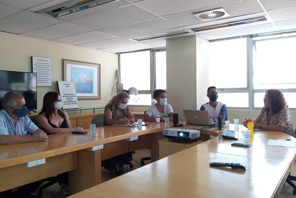 PRESENÇAS – Participaram da reunião a coordenadora da Política da Diversidade e Grupos Específicos do Deppen, Sandra Duarte; e os servidores do setor de Tratamento Penal do Deppen, Romi Aquino, Denise Correia dos Santos e Alcione Prá, além de representantes do NA.