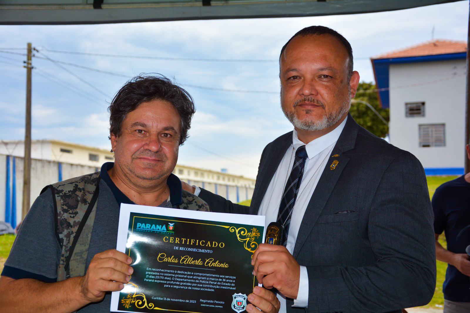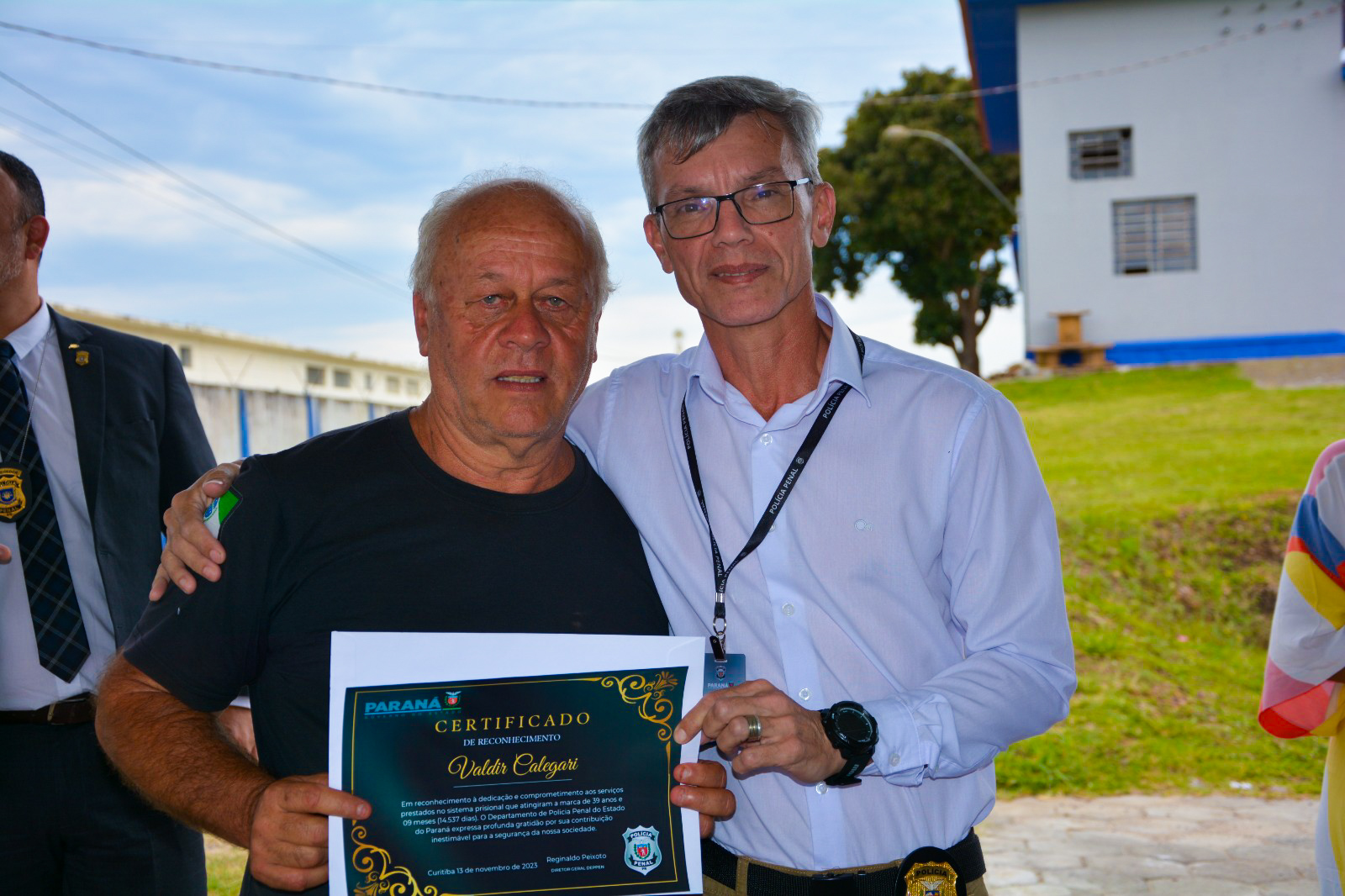 Entre os homenageados o destaque foi o senhor Carlos Alberto de Carvalho, em atividade há mais de 50 anos e três meses no sistema prisional. O segundo mais longevo nesta atividade está com 39 anos e nove meses na profissão. Carlos revela que já requereu a aposentadoria e afirma estar deixando sua atividade em breve em com a saúde em ótimas condições. “Eu só tenho a agradecer por essa homenagem. Finalmente, requeri minha aposentadoria. Minha vida toda eu fiz dentro da Polícia Penal, atuei principalmente na Prisão Provisória de Curitiba, Penitenciária Central do Estado e Colônia Penal e fico feliz em sair com a saúde ótima. Pude ver toda a evolução do Departamento, principalmente na estrutura. No começo não tínhamos praticamente nada e atualmente os servidores estão muito bem equipados dentro de uma evolução natural da profissão”, finaliza.