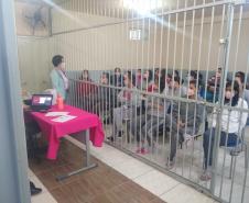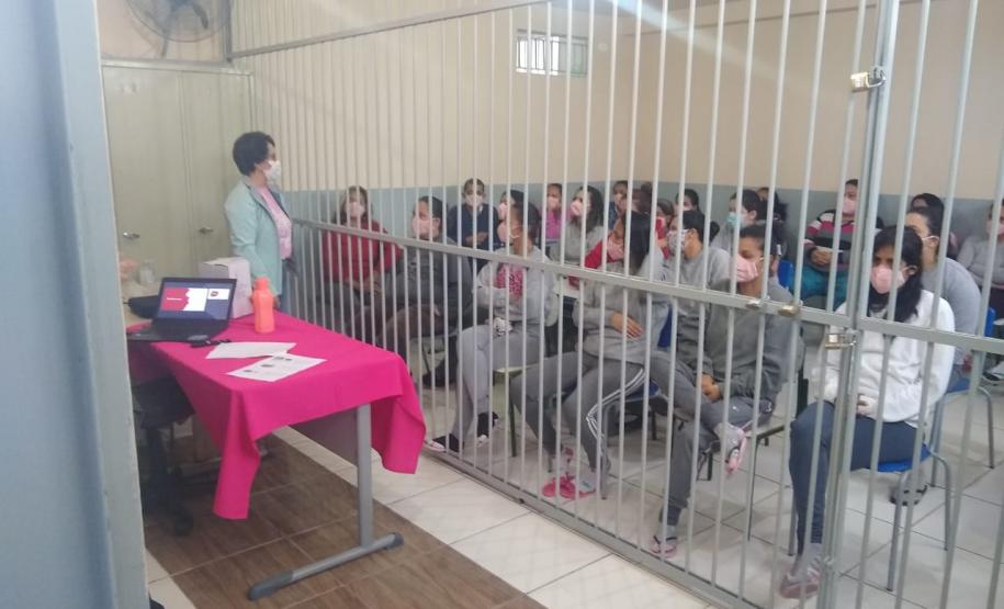 Durante todo o mês de outubro, a profissional percorreu diferentes unidades prisionais e administrativas do Deppen com palestras voltadas para o cuidado em saúde, tanto para presas e servidoras. Um desses locais foi o Complexo Médico Penal, em Pinhais, que abriga presas em final de gestação e mulheres em cumprimento de medida de segurança.