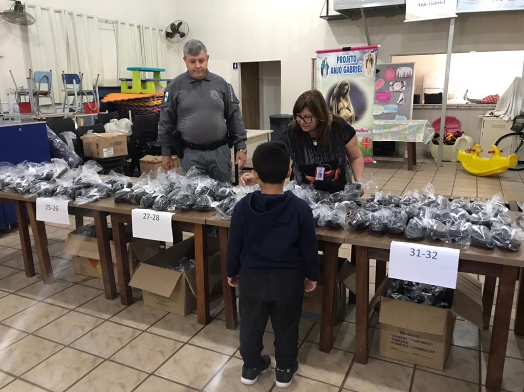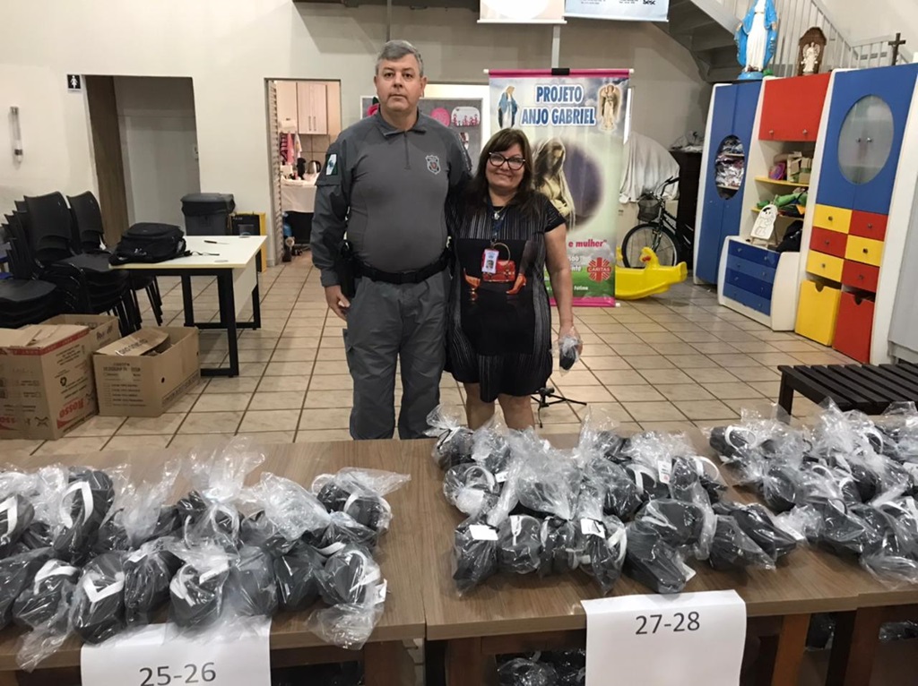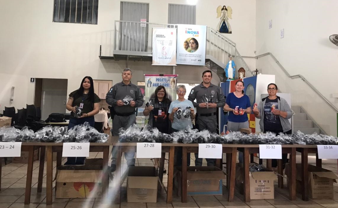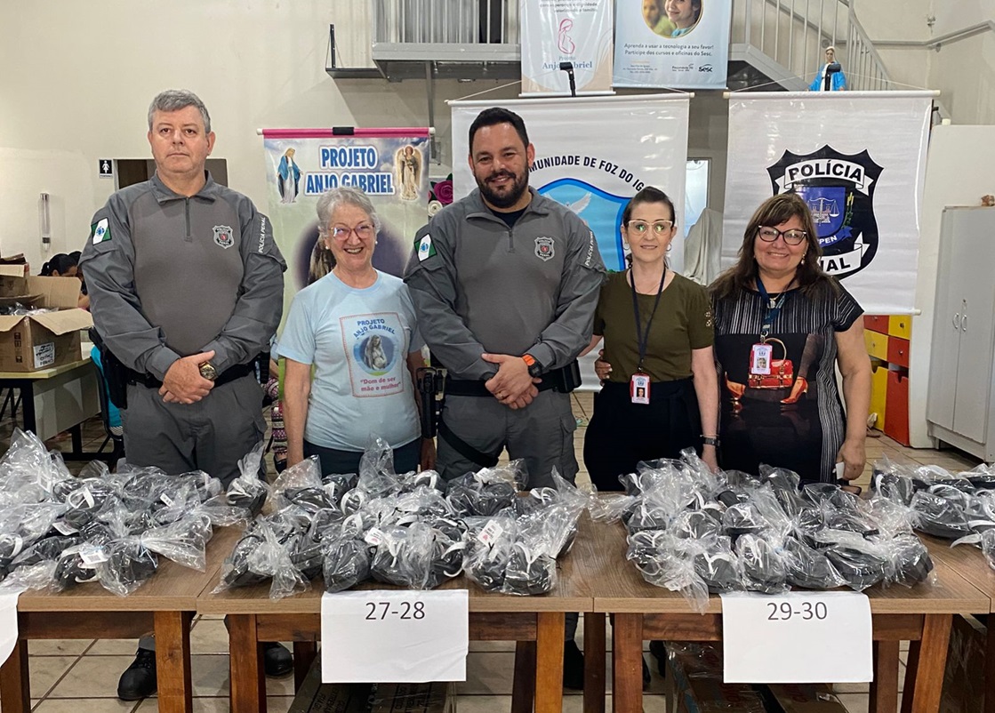A parceria entre a Polícia Penal do Paraná (PPPR), através da Penitenciária Estadual de Foz do Iguaçu IV (PEF IV), e o Conselho da Comunidade local, realizou nesta terça-feira (21) a entrega de 400 pares de chinelos para crianças em situação de vulnerabilidade social atendidas pela entidade do Terceiro Setor, vinculada à Cáritas, “Anjo Gabriel”.