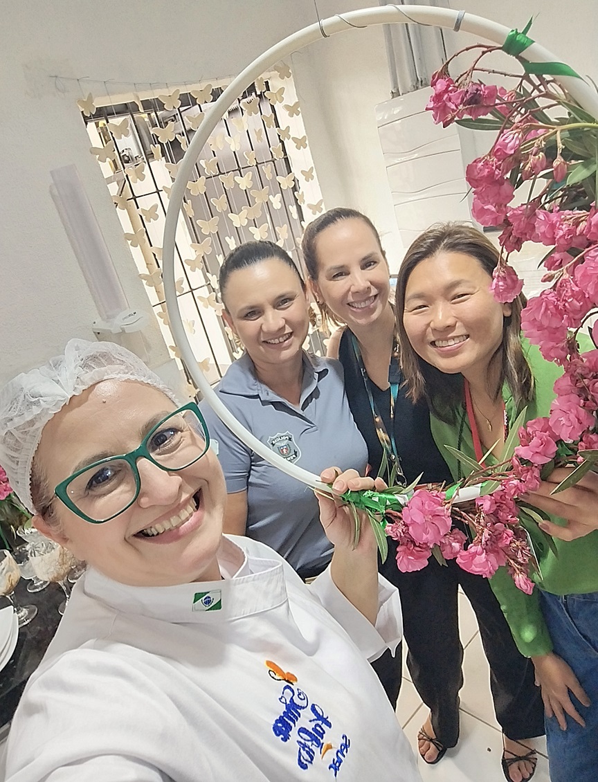 Com decoração inspirada na primavera como tema, foi realizada nesta quinta-feira (18) uma cerimônia de encerramento de mais um curso na cozinha escola da Cadeia Pública Feminina de Londrina, que celebrou mais de 600 matrículas junto ao Serviço Nacional de Aprendizagem Comercial (Senac) desde a inauguração do espaço dentro da unidade em março de 2023, resultado de importantes parcerias da Polícia Penal do Paraná (PPPR) com a Procuradoria do Trabalho de Londrina, além de iniciativas de programas de gratuidade do Senac Londrina.