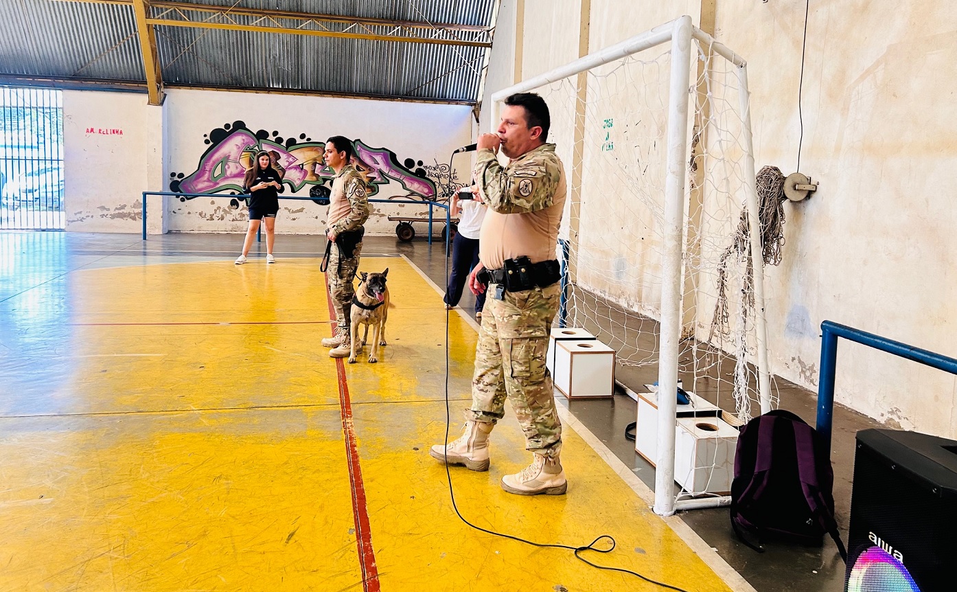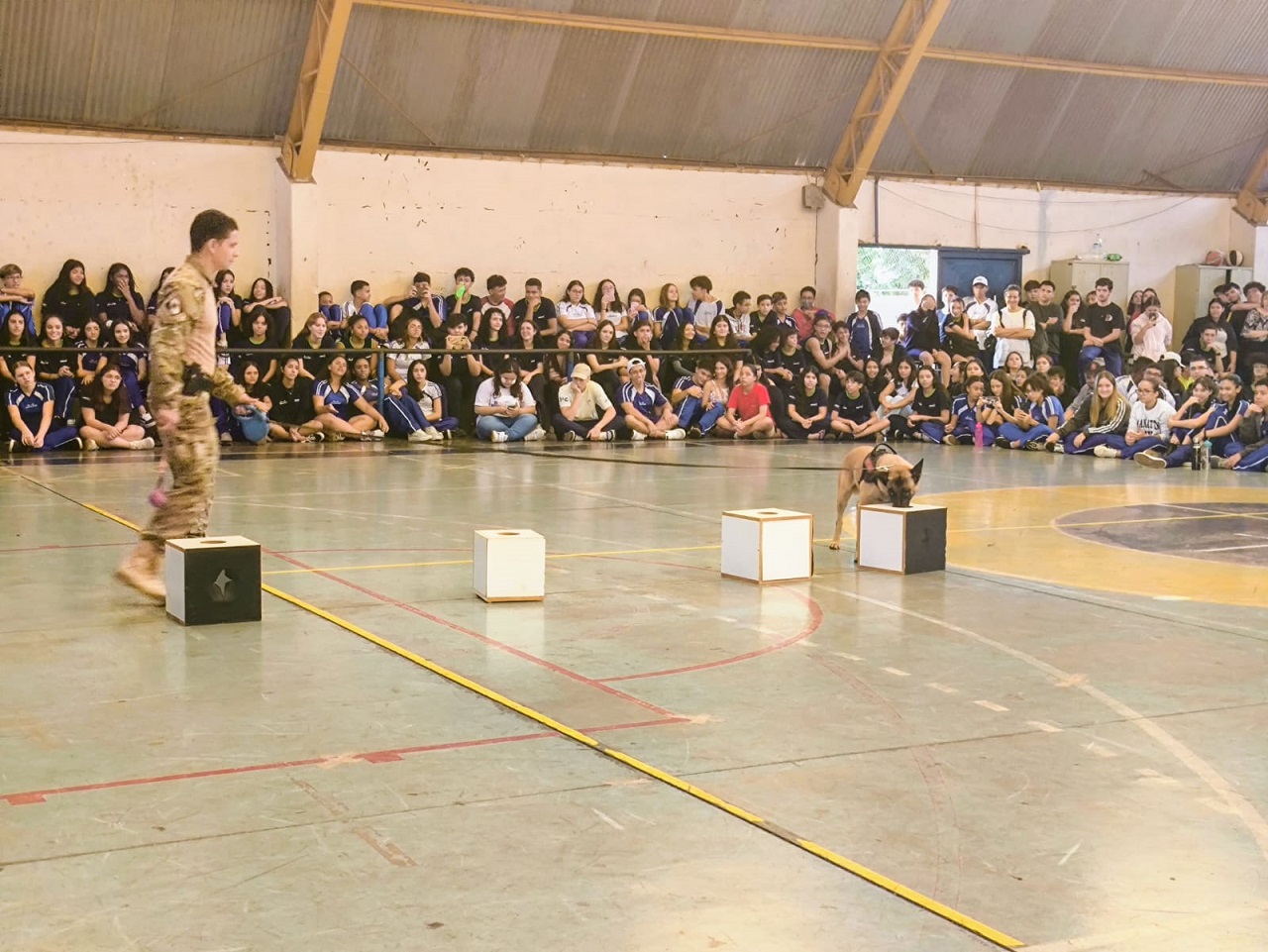 Além da palestra, que teve duração aproximada de duas horas, houve uma apresentação prática com o cão policial Hassan, um pastor-belga especializado em faro de entorpecentes, celulares e busca de foragidos. A simulação atraiu a atenção de aproximadamente 600 estudantes do turno da manhã, que puderam observar de perto a eficiência do animal em uma operação simulada de localização de substâncias ilícitas.