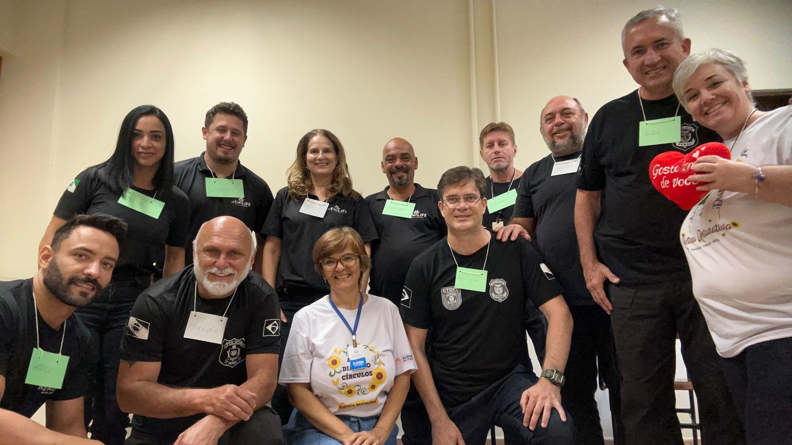 Facilitadores recebem formação teórica e prática - Para uma das facilitadoras das vivências, Cláudia Ângelo da Silva, integrante da equipe da Amparo, facilitar o círculo da roda da medicina com os policiais penais trouxe uma forte emoção. “Recebê-los e poder vivenciar a autorreflexão de como estamos cuidando de nós, conscientizarmos da nossa condição física, emocional, mental e espiritualmente, ouvir a nós mesmos e o outro sem julgamento, precisa de coragem. Fiquei feliz, pois desde a pandemia não facilitava círculos presenciais com grupos na sala da Amparo. Ao final do Círculo, tive a necessidade de abraçar cada participante. Somos seres humanos bons, sábios e poderosos (um dos pressupostos da Justiça Restaurativa). Sou grata pelo momento vivenciado, pela entrega e confiança de vocês”, enfatiza Cláudia.