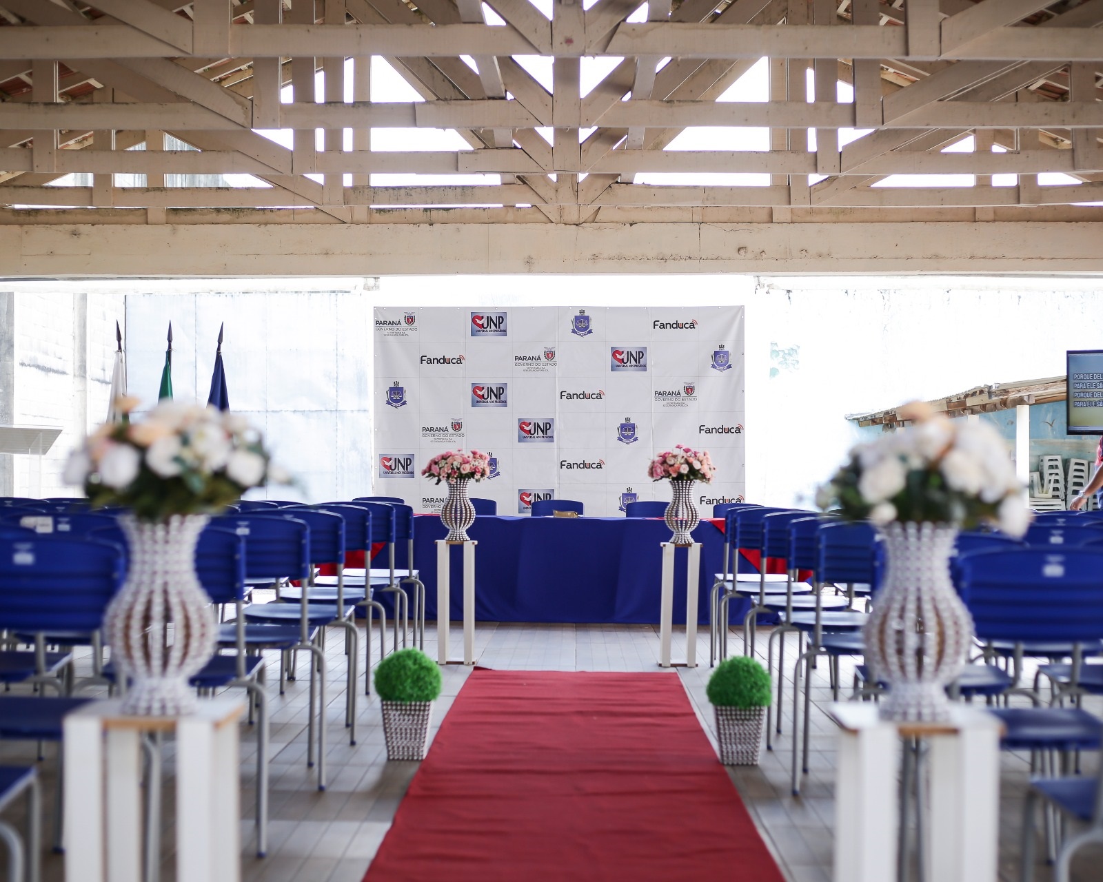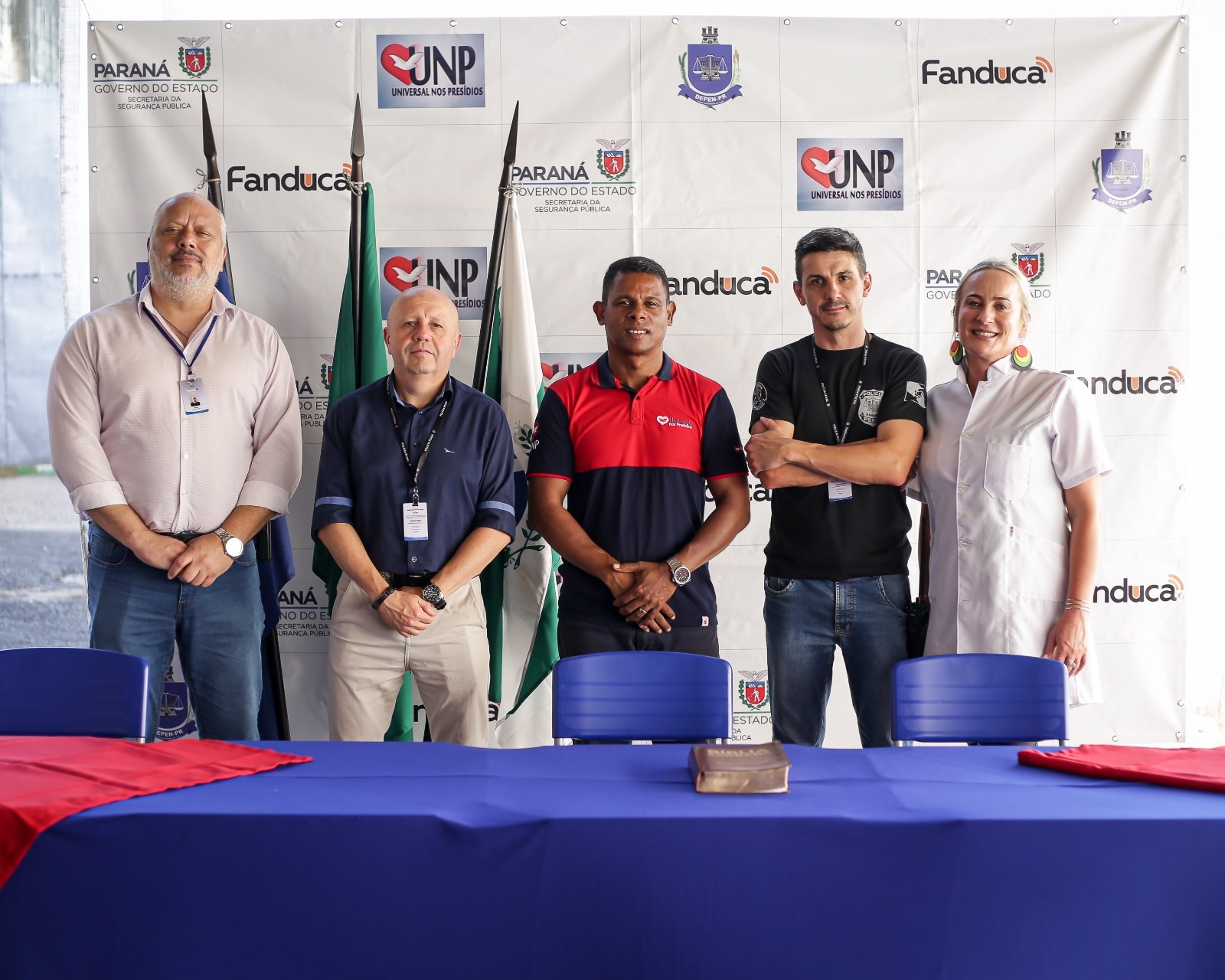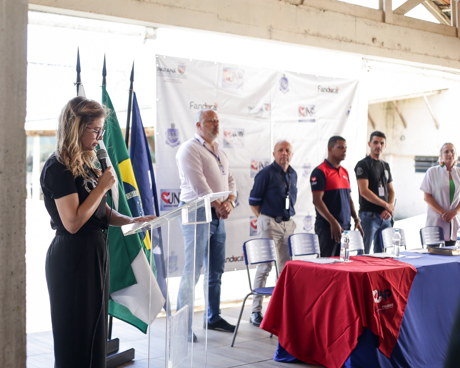 Foi realizada na Penitenciaria Central de Estado – Unidade de Progressão (PCE-UP), na sexta-feira (1º), a formatura dos cursos profissionalizantes, presenciais e EAD, realizados no segundo semestre de 2023, oportunizados aos custodiados através da parceria entre a Polícia Penal do Paraná (PPPR) e a Igreja Universal do Reino de Deus (IURD), com o projeto Universal Nos Presídios (UNP). Na ocasião, 142 pessoas privadas de liberdade (PPL) se formaram nos cursos de Gestão de Empresas, Gestão de Empresas de Transporte, Construção Civil, Auxiliar de Farmácia, Culinária e Barbearia.