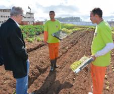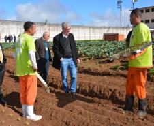 Presos da Penitenciária Central do Estado - Unidade de Progressão (PCE-UP), localizada em Piraquara, na Região Metropolitana de Curitiba, trabalham no plantio de hortaliças e verduras orgânicas produzidas no terreno da unidade penal. Nesta quinta-feira (18), o secretário de Estado da Agricultura e Abastecimento, Norberto Anacleto Ortigara, conheceu a iniciativa, que pode ser ampliada para outras regiões do Estado.