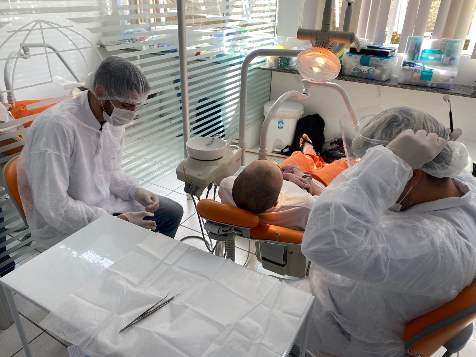 Para receber os atendimentos, os presos passam por uma avaliação na Seção de Saúde de cada unidade prisional. Conforme algo for identificado pela triagem a pessoa será encaminhada para o atendimento.