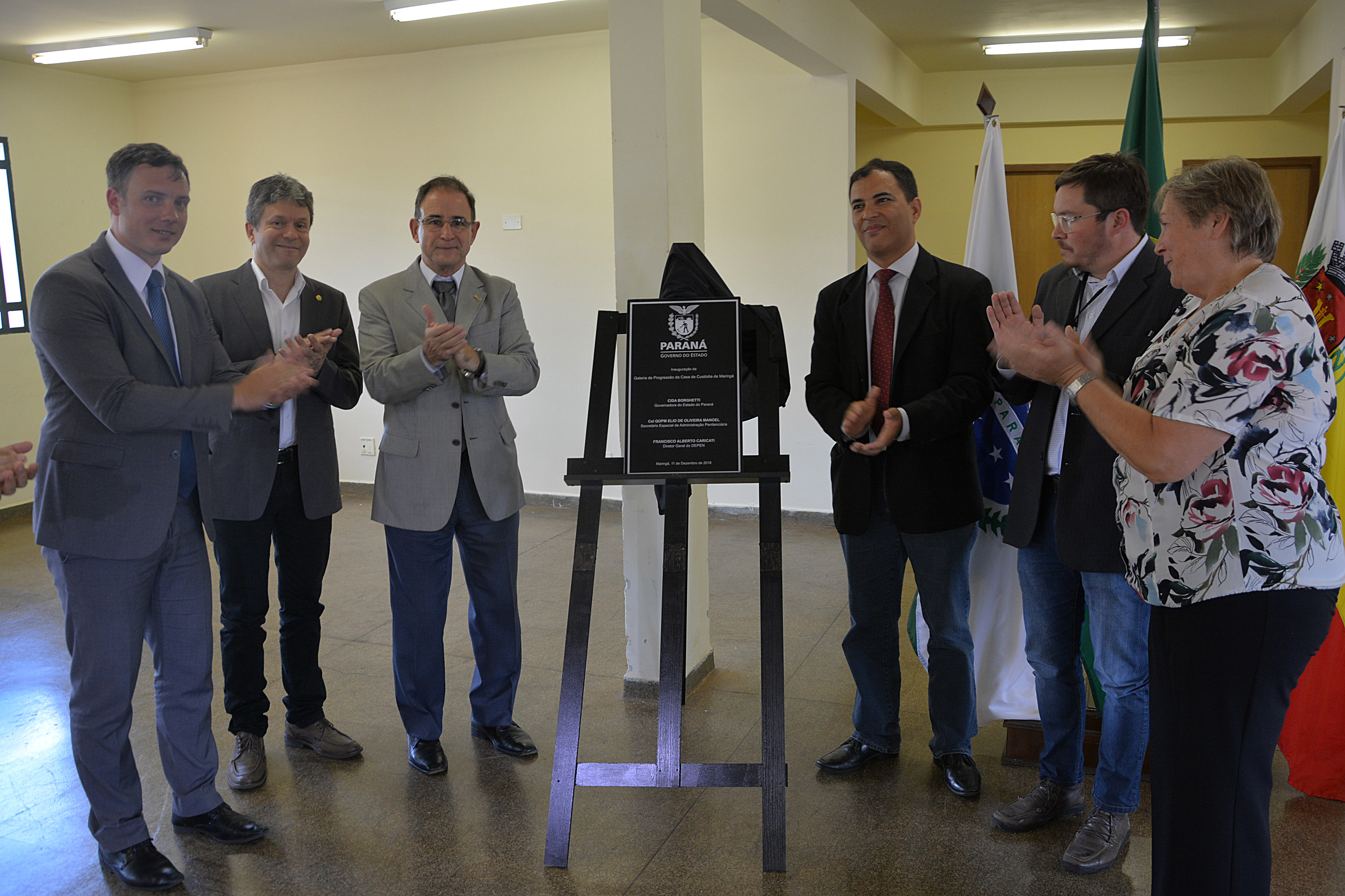 INAUGURAÇÕES - Em Maringá são 48 vagas para presos que ocuparão uma galeria da Casa de Custódia de Maringá (CCM). Os presos estão passando por uma seleção de perfil e devem ser encaminhados ao local de forma gradativa. “Já constatamos que o projeto de progressão é extremamente eficiente. Em Curitiba, onde instalamos o projeto-piloto, os resultados comprovam que mais de 90% dos presos atendidos não voltaram a praticar crimes. Por isso, estamos levando essa iniciativa a todas as regiões do Paraná”, afirmou o vice-diretor do Depen, Thorsthein Ferraz, que participou da cerimônia da inauguração.