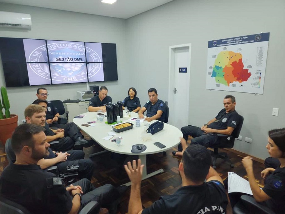 Durante a semana de alinhamentos de fluxo e procedimentos operacionais, estavam presentes representantes de todas as regionais da Divisão de Monitoração Eletrônica do Paraná, das cidades de Curitiba, Ponta Grossa, Guarapuava, Maringá, Londrina, Cascavel, Francisco Beltrão e Foz do Iguaçu.