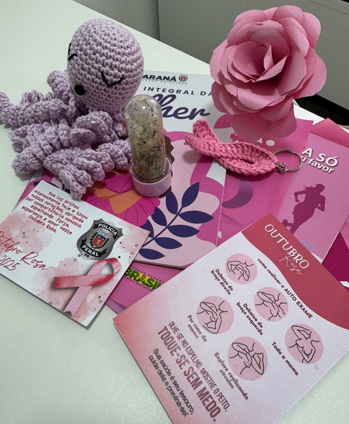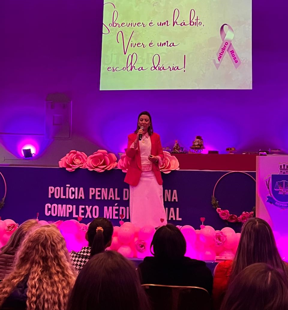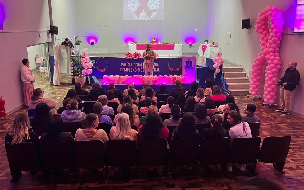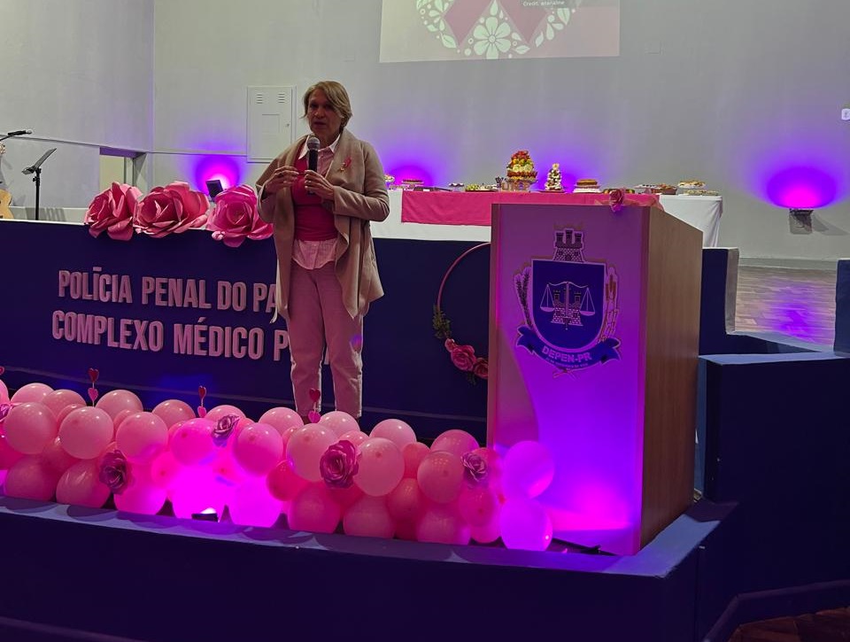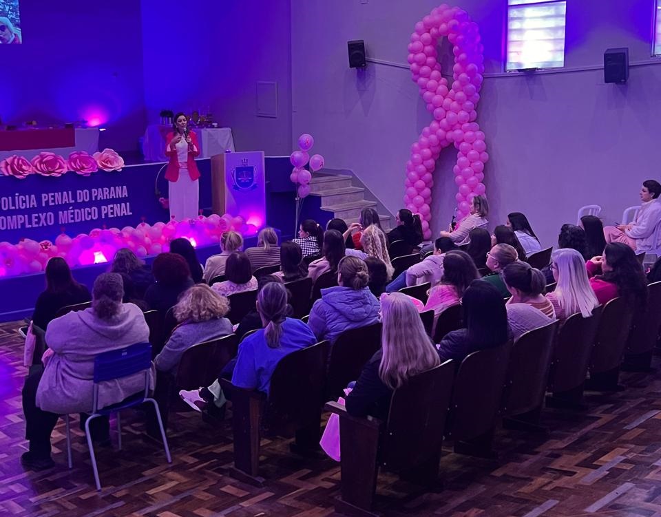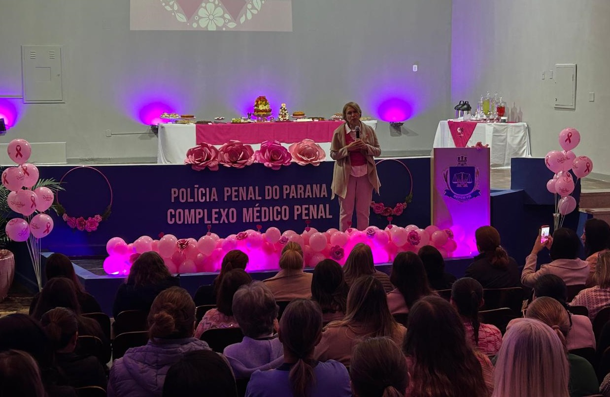 Em alusão à campanha Outubro Rosa, o Complexo Médico Penal (CMP) da Polícia Penal do Paraná (PPPR) foi palco, nesta quarta (22) e quinta-feira (23), de um evento dedicado à conscientização e à prevenção do câncer de mama e de colo de útero, com atividades voltadas ao autocuidado e à promoção do bem-estar feminino. A ação contou com a participação de servidoras do CMP, do Complexo Social, da sede administrativa da PPPR e de unidades penais de Curitiba e Região Metropolitana, reforçando o compromisso coletivo da instituição com a saúde e o fortalecimento da mulher.