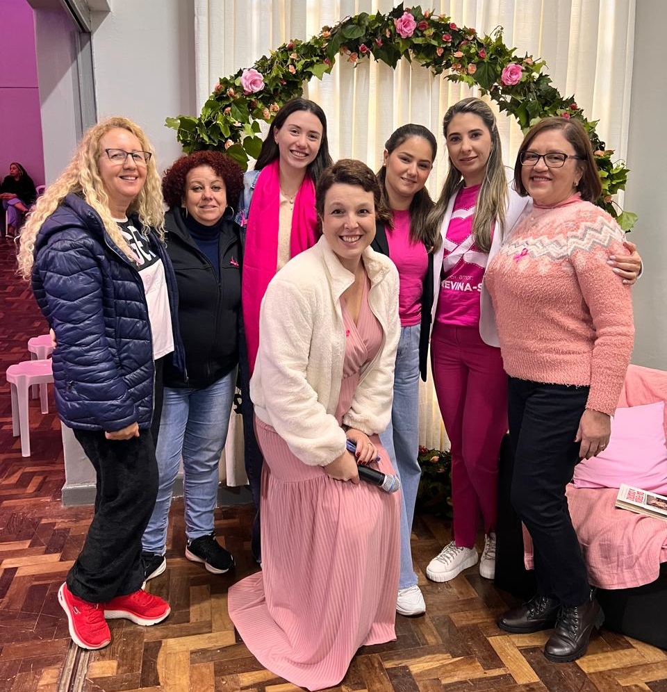 “Tive a oportunidade de falar sobre saúde feminina e prevenção do câncer de mama na palestra intitulada ‘Do tempo que passa, ao corpo que vive: menopausa, prevenção e vida’. O evento estava lindo, muito bem organizado, com um café delicioso preparado para as mulheres e uma decoração que demonstrava carinho e dedicação”, destacou Emelly Tremarin.